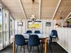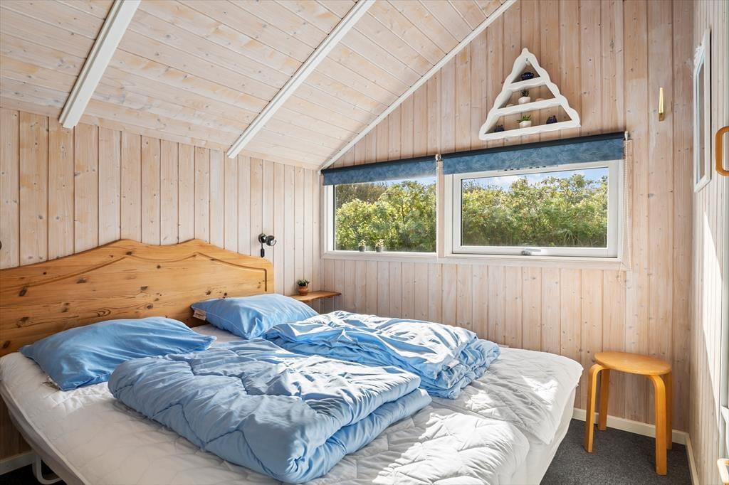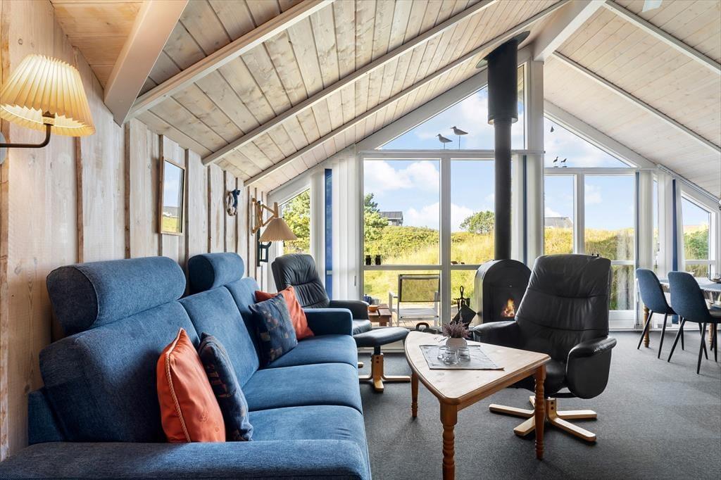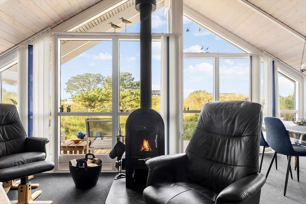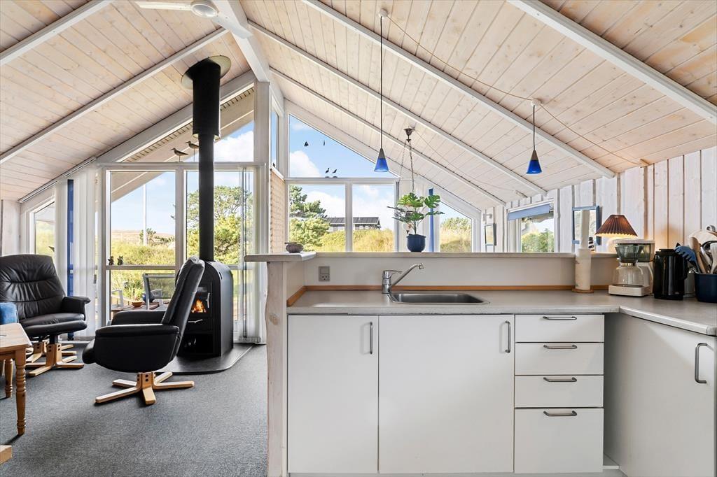 Huset er lige præcis, som en klassisk feriebolig skal være: Der er loft til kip, lyse trælister på væggene og brændeovn i stuen, og når du slapper af i sofaen eller spiller brætspil ved spisebordet, kan du kigge lige ud på naturgrundens klitter. I det åbne køkken har du gode arbejdsforhold, når der skal laves mad, og hvis der er nogle i familien, der vil give en hånd med, kan I sagtens stå to og hygge jer med at skære salat og røre i gryderne. På de tre soveværelser er der sengepladser til seks personer, og så er det for øvrigt rart, at der er både gæstetoilet og badeværelse i huset. Sidstnævnte er udstyret med både spabad og sauna, så hvis du har lyst til at bruge en aften på wellness, kan det sagtens lade sig gøre.