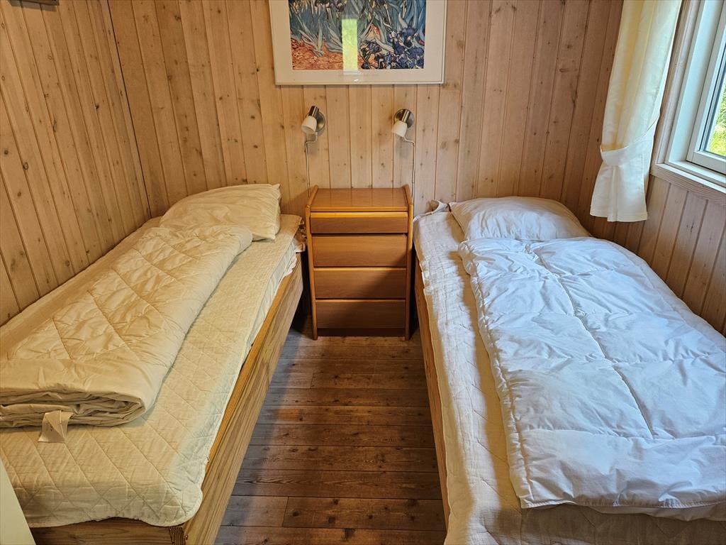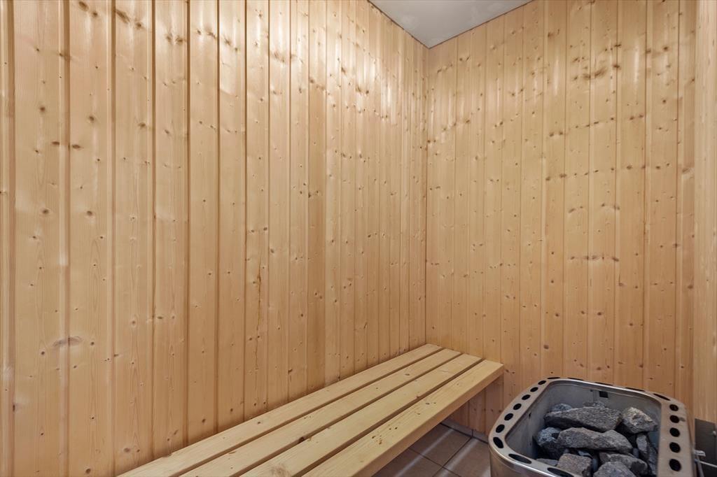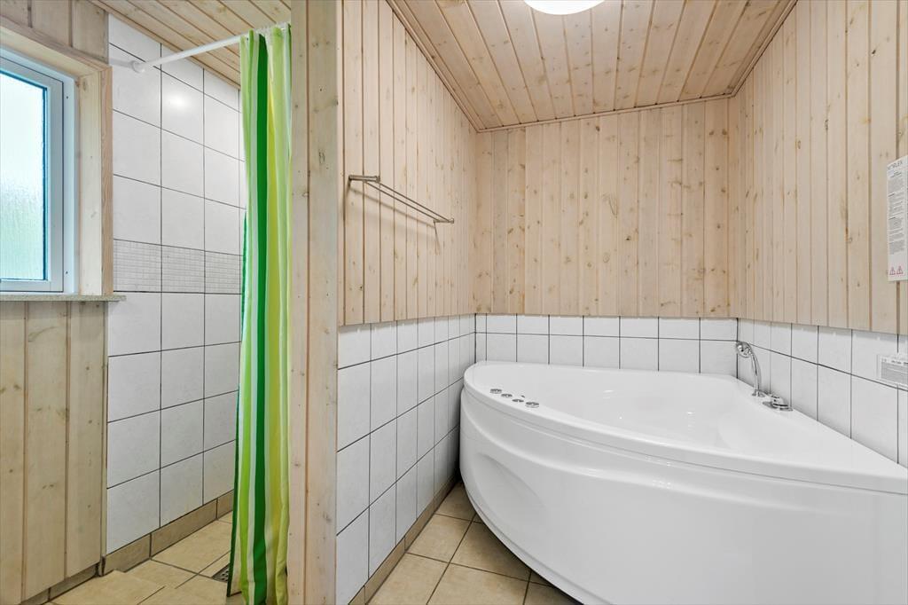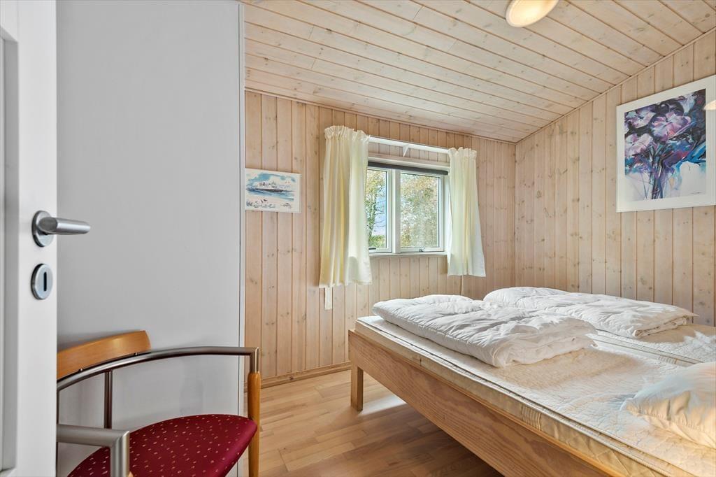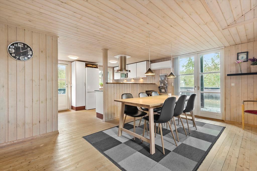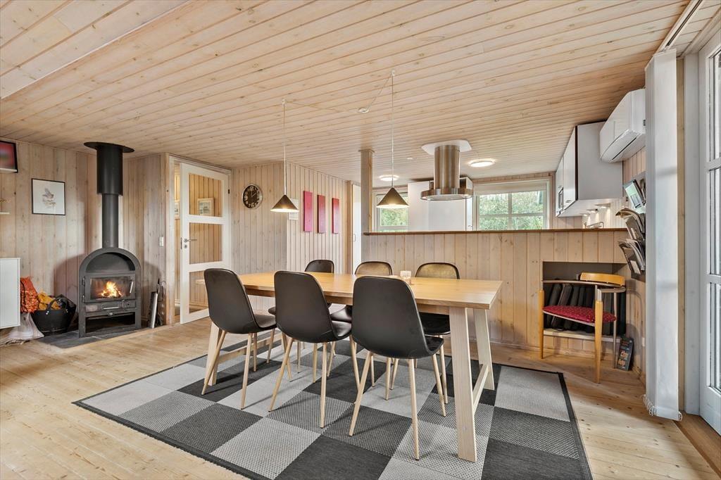 Sommerhuset har en god og velfungerende indretning, der fint kan rumme seks personer – så måske kan du endda invitere bedsteforældrene eller et par gode venner med på ferien. I opholdsafdelingen ligger køkken og stue i åben forbindelse, og det er det helt oplagte samlingspunkt, for her er der god plads til at lave mad, sidde omkring spisebordet og flade ud i sofaafdelingen. Ovenlyset og de store vinduespartier ud mod terrassen lader solen kigge indenfor, og hvis det er køligt i vejret, står en brændeovn klar til at sprede både hyggestemning og varme. Er du i humør til wellness, er der både sauna og spabad på badeværelset, og når det er sengetid, kan du se frem til at få en god nats søvn på et af de tre soveværelser.