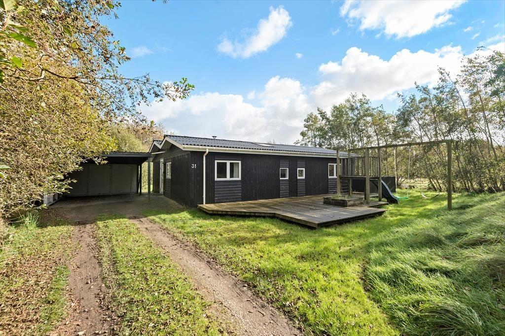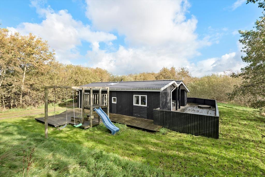 Naturgrunden er med sine 2700 m2 dejligt stor, og det er en skøn og ugeneret oase med tæt randbeplantning og græsplæne. Dyrelivet er rigt i området, så det kan sagtens være, at du vil se en hjort, en kanin eller måske en fasan kigge forbi, mens du sidder inden døre med kaffe – men når du og familien selv er udenfor, får I sikkert hele herligheden for jer selv. Til børnene er der sandkasse og legetårn med gynger og rutsjebane, og hvis I er i humør til havespil, er det bare om at komme i gang. Sæt dog også god tid af til afslapning, solbadning og grillmiddage på det lækre terrassemiljø, der breder sig rundt om huset. Her er der både lukkede, overdækkede og helt åbne opholdspladser at vælge imellem, så du kan finde den helt rette opholdsplads uanset humøret.