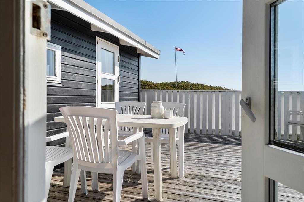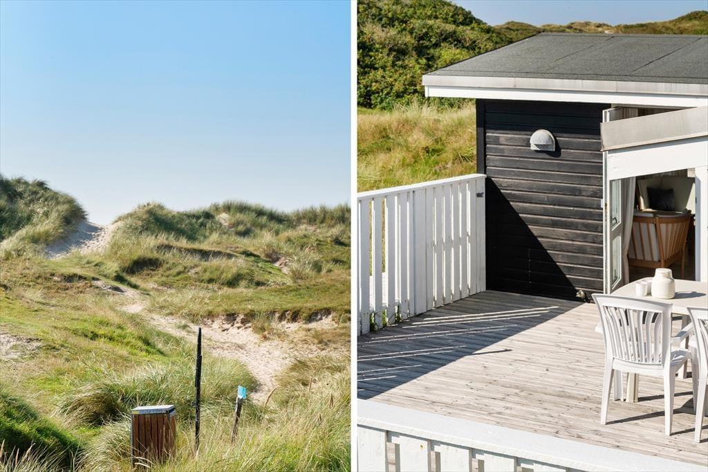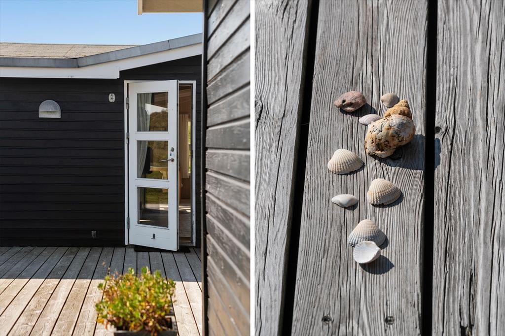 Udenfor finder du skønne afskærmede terrasser, der indbyder til afslapning under den danske sol. Her kan du nyde morgenkaffen, mens fuglene synger, eller grille en lækker middag med familien på den udendørs grill. Den store naturgrund på 2500 m² giver rig mulighed for leg og udforskning, og med den udendørs bruser kan du skylle sandet af efter en dag ved stranden. Uanset om du vælger at slappe af med en god bog eller tage på en energisk løbetur i klitterne, er der masser af plads til at nyde livet i det fri.