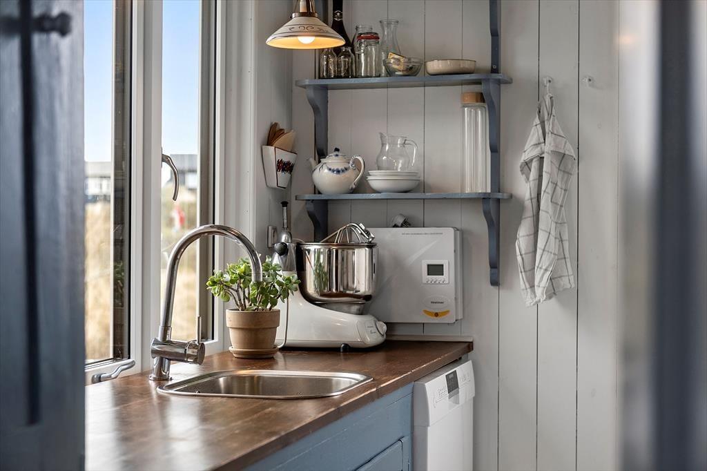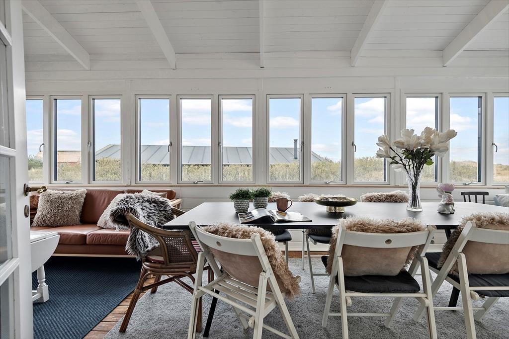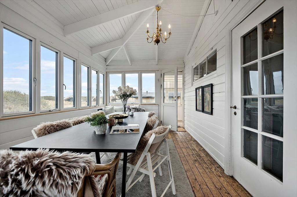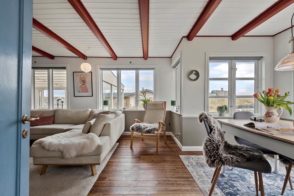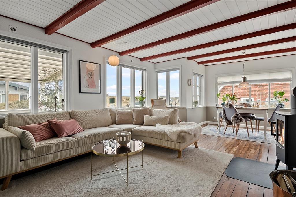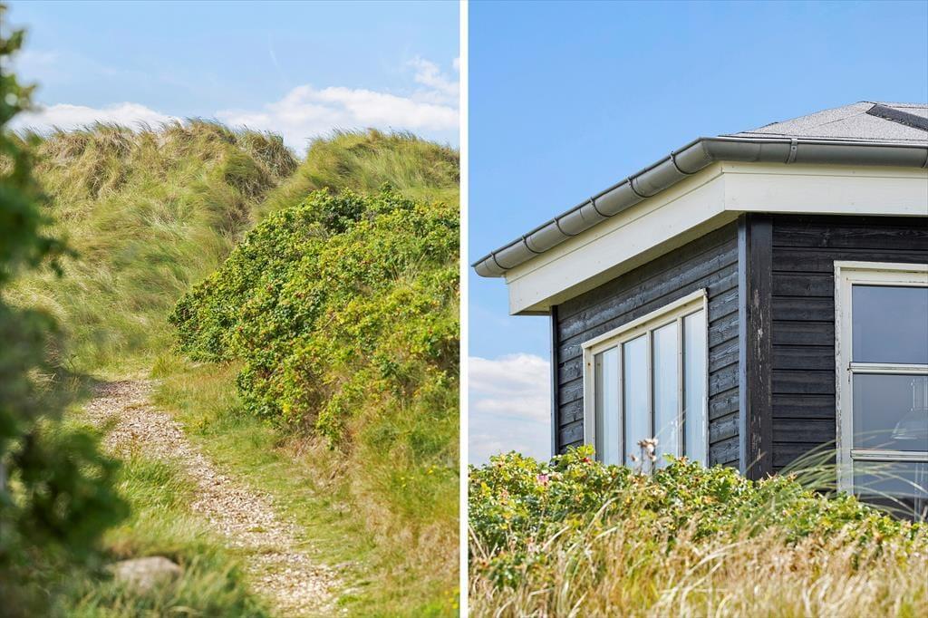 Sommerhuset ligger på en rolig naturgrund med flere skønne terrasser, hvor du kan nyde livet i det fri. Sæt dig til rette med morgenkaffen og mærk solen varme, eller træk dig tilbage til en mere afskærmet plads, når du ønsker ro og læ. Haven er et grønt åndehul, der giver plads til både leg og afslapning, og hvis du lytter godt efter, kan du høre Vesterhavets brusen i det fjerne. Med den korte afstand til stranden kan du nemt pakke en picnickurv og tilbringe dagen med at bygge sandslotte, samle muslingeskaller eller tage en forfriskende dukkert i bølgerne.