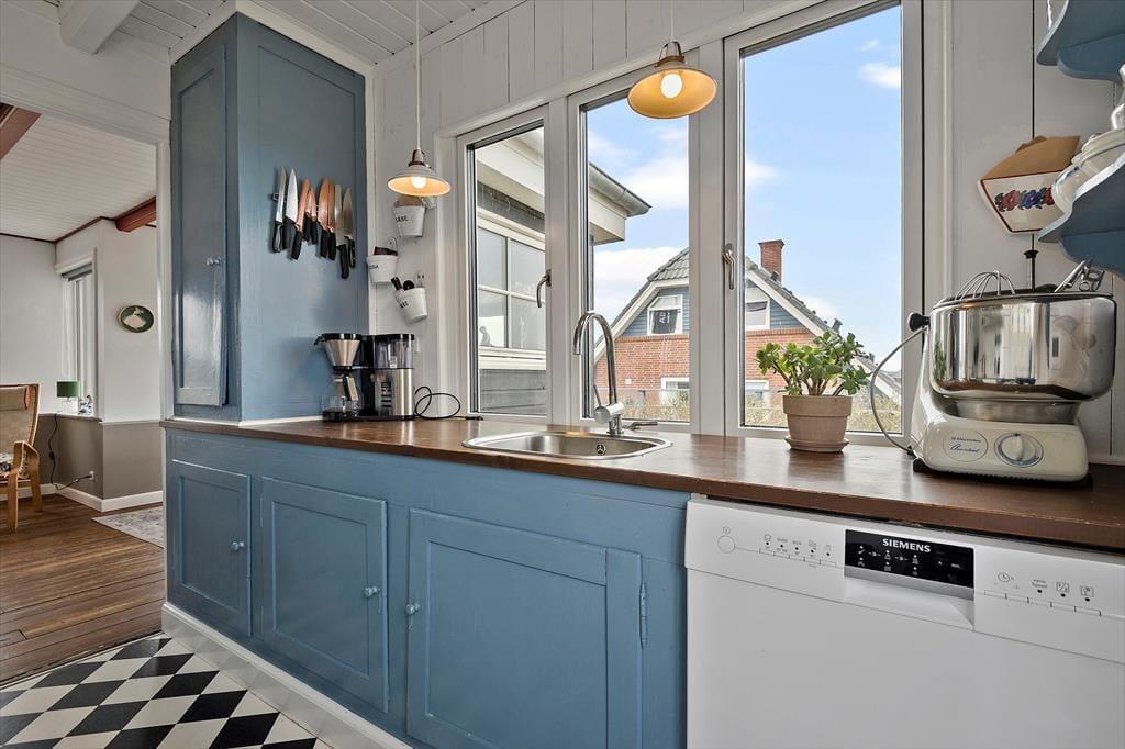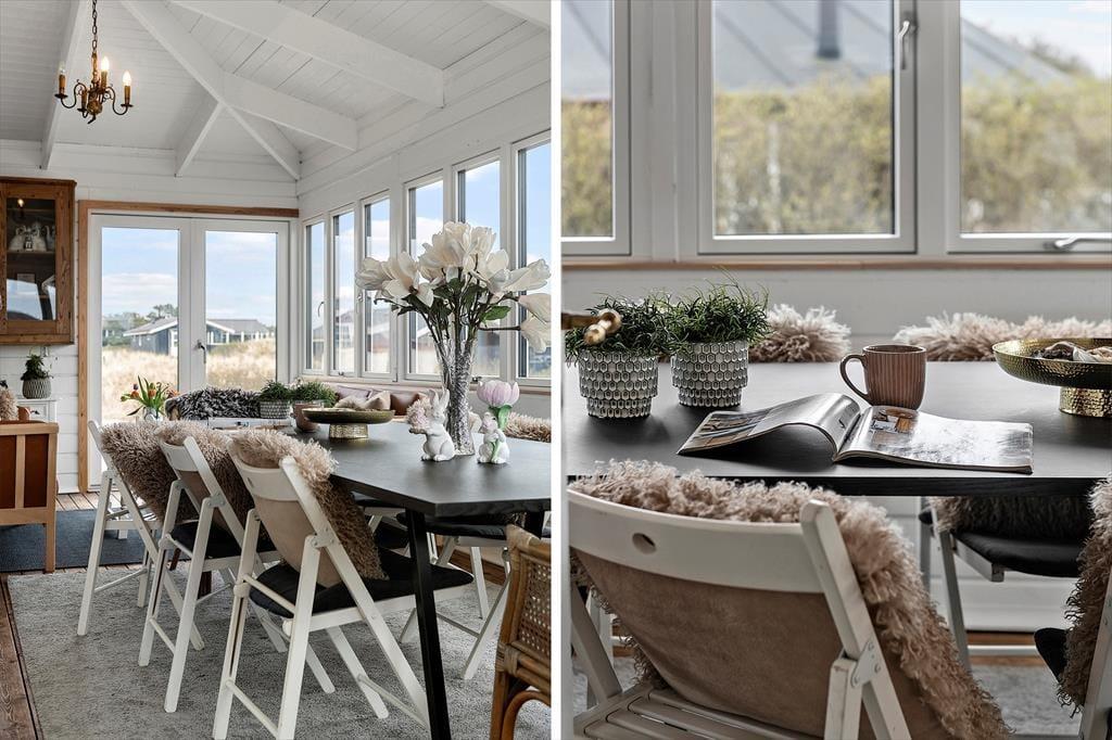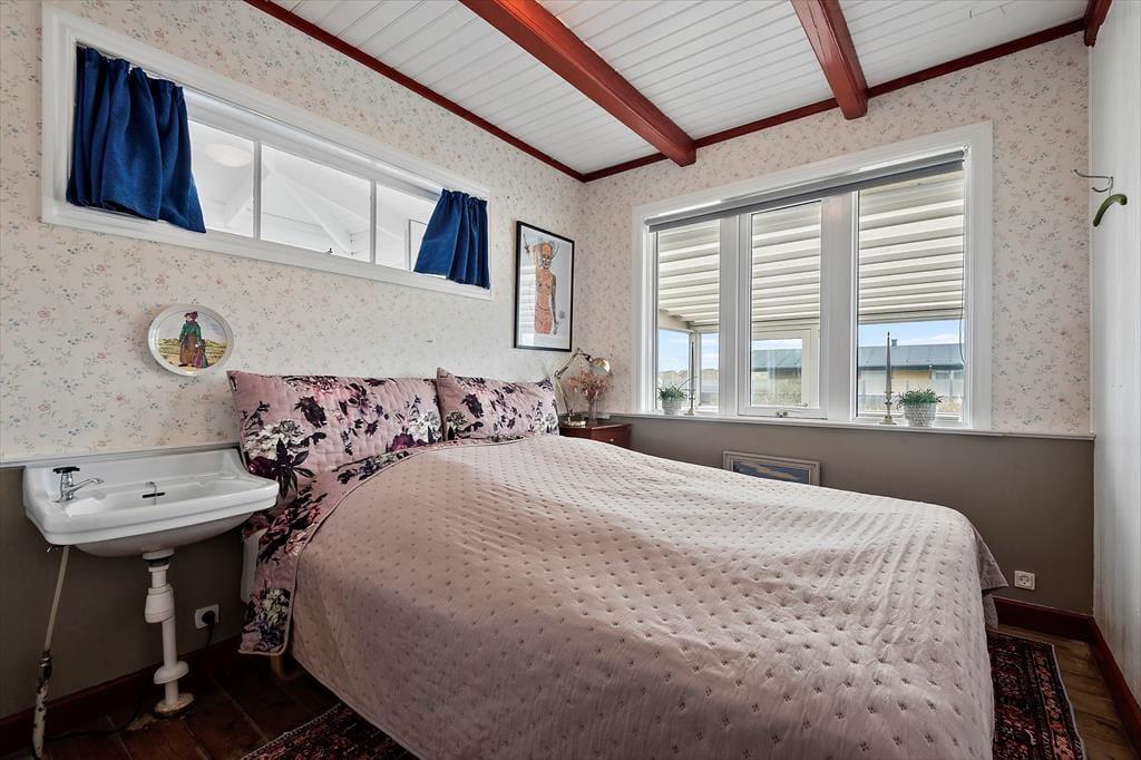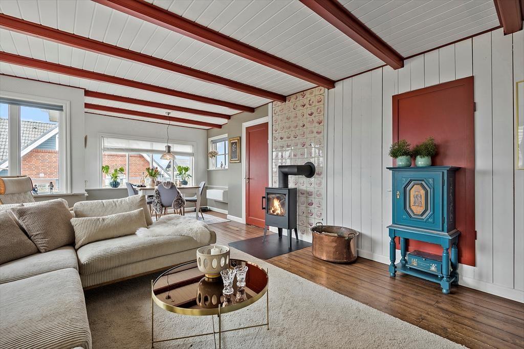 Fra første øjeblik fornemmer du den indbydende stemning, der præger sommerhuset. Indenfor mødes du af en varm atmosfære og et stilfuldt interiør med sans for detaljer. Opholdsrummet er husets hjerte – et dejligt sted at samles foran brændeovnen eller nyde måltider omkring spisebordet, mens lyset strømmer ind gennem de store vinduespartier. Køkkenet er både hyggeligt og funktionelt, og med udsigt til de naturskønne omgivelser bliver selv madlavningen en fornøjelse. I de rummelige soveværelser er der tænkt på komfort, så du kan vågne veludhvilet til en ny dag fuld af oplevelser. Det lille, lyse badeværelse har en enkel og funktionel indretning med bruser, toilet og håndvask. Her får du et praktisk rum, der giver en frisk og behagelig start på dagen under ferien.