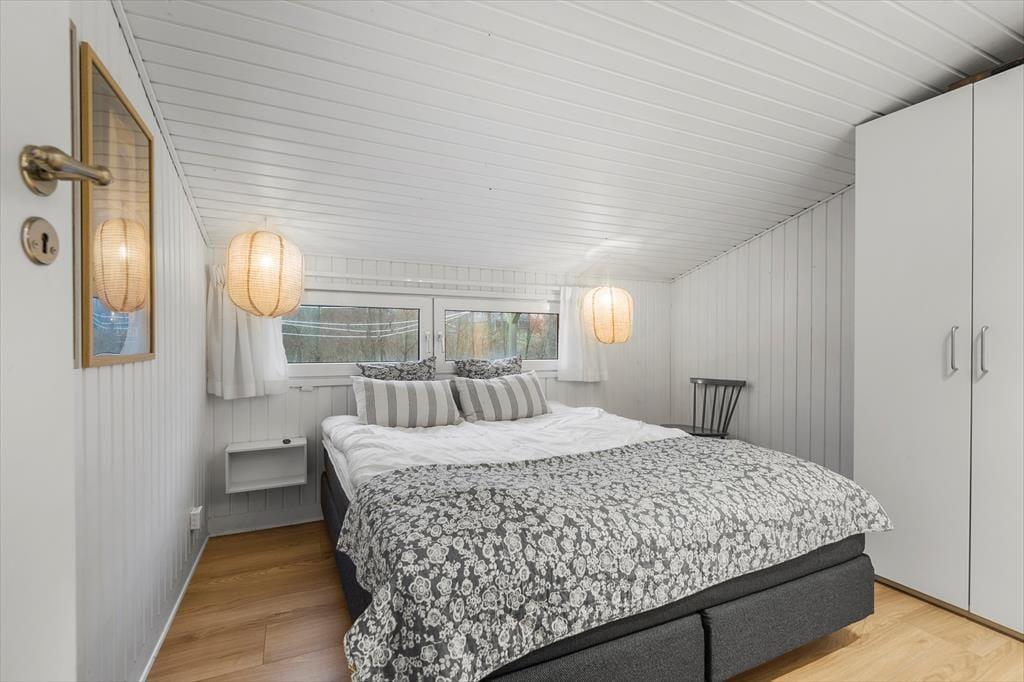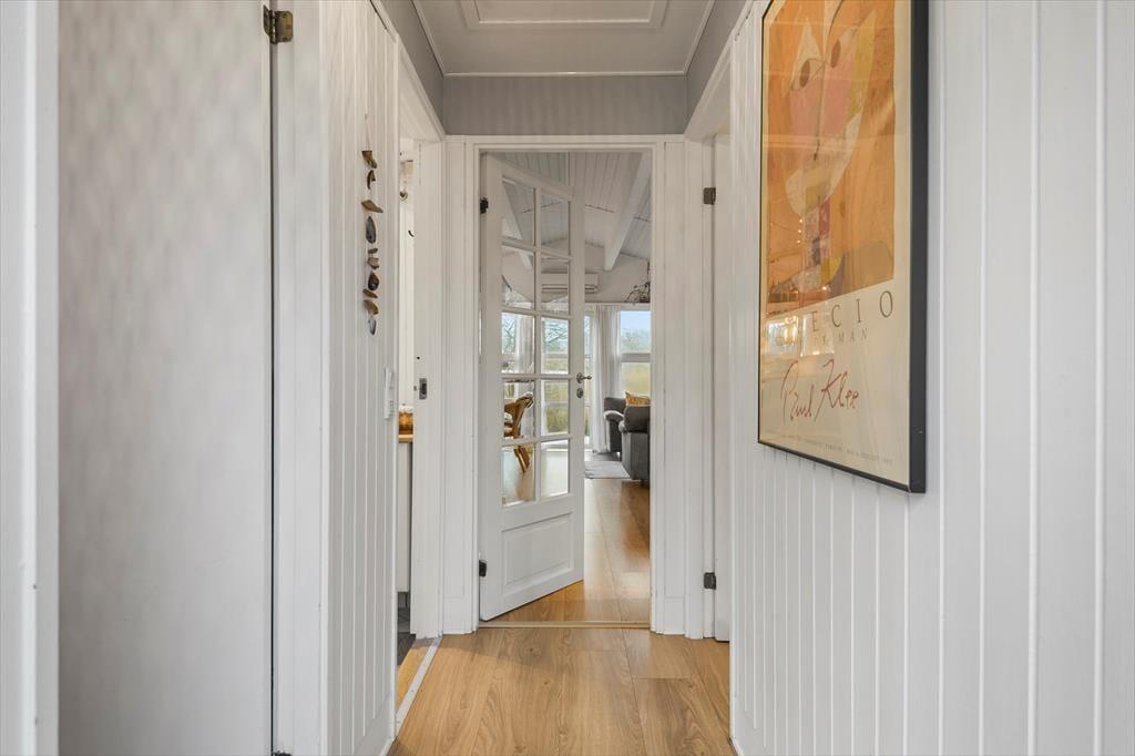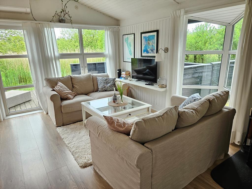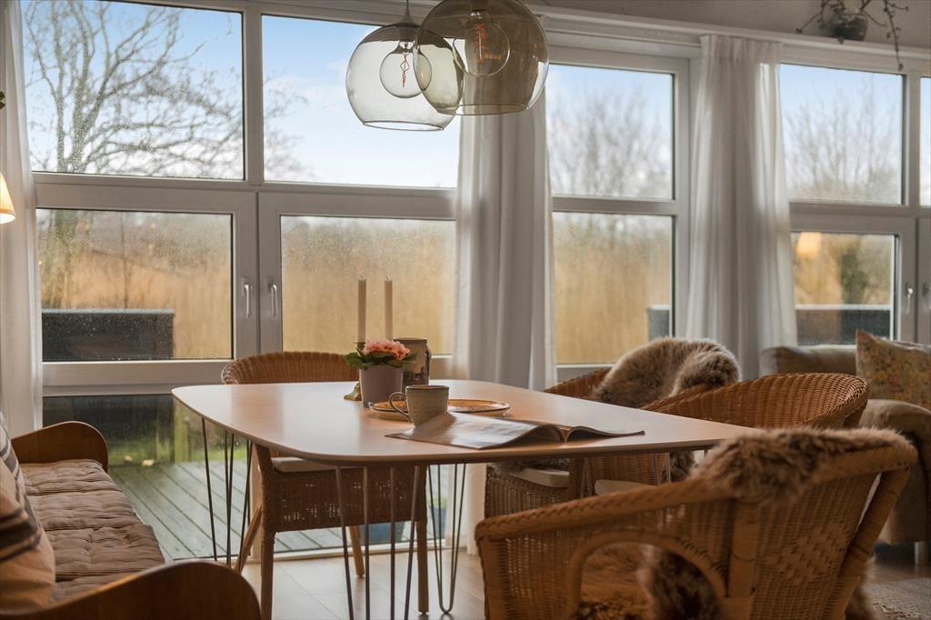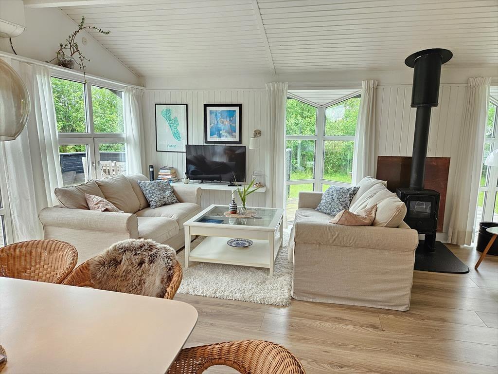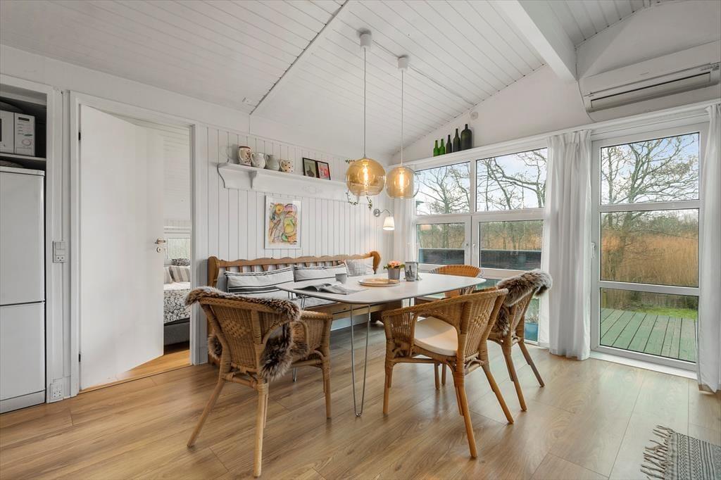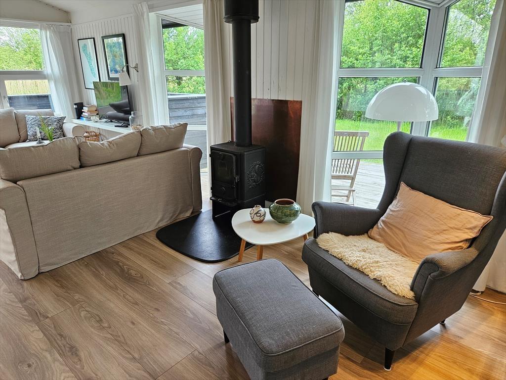 Det lyse og hyggelige sommerhus danner de ideelle rammer for en afslappende ferie. Når du træder indenfor, mødes du af en varm atmosfære, hvor stue og køkken smelter sammen og skaber et naturligt samlingspunkt. Her kan du sætte dig i sofaen med en god bog, mens lyset strømmer ind gennem vinduerne, eller samles med dine nærmeste omkring spisebordet til hyggelige måltider. Hver detalje er nøje udvalgt for at skabe en følelse af hjemlig hygge og afslapning. Det veludstyrede køkken gør det til en fornøjelse at tilberede dagens måltider, mens den afslappede stemning breder sig i hele huset.