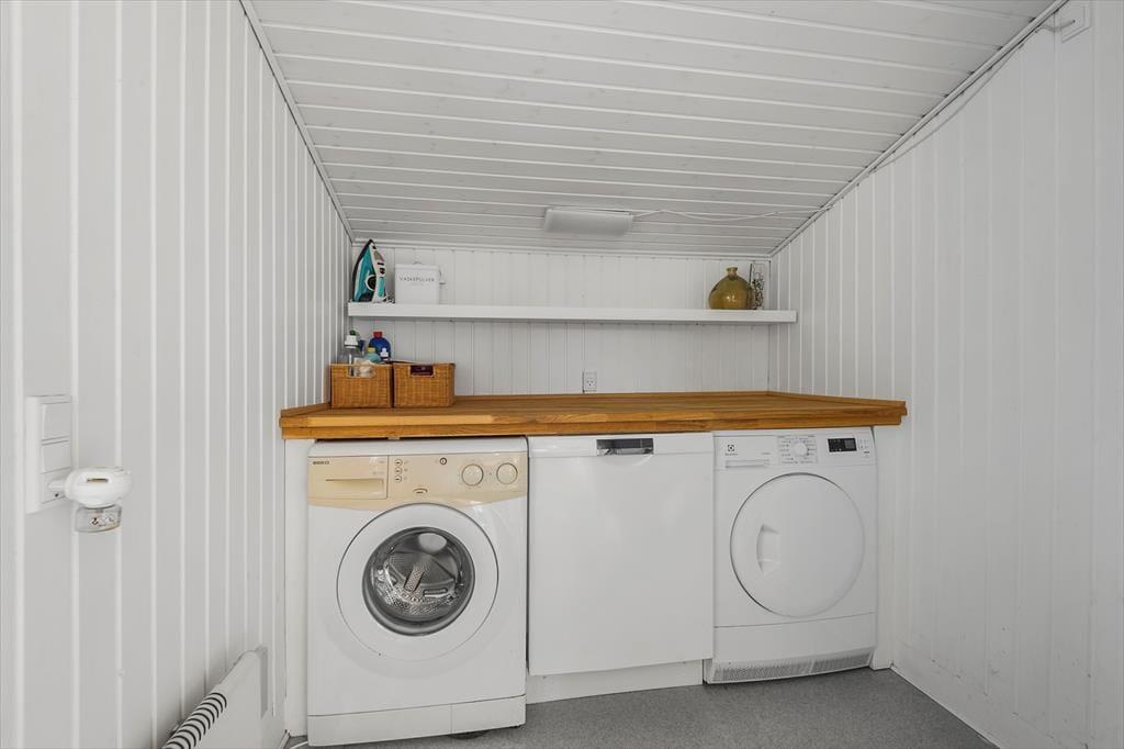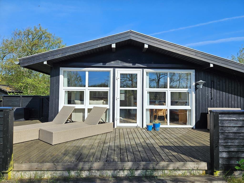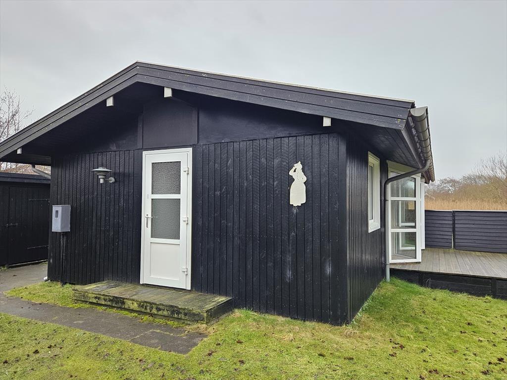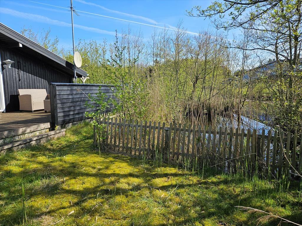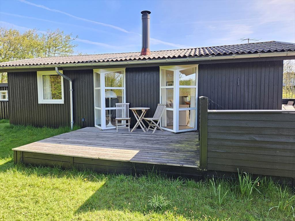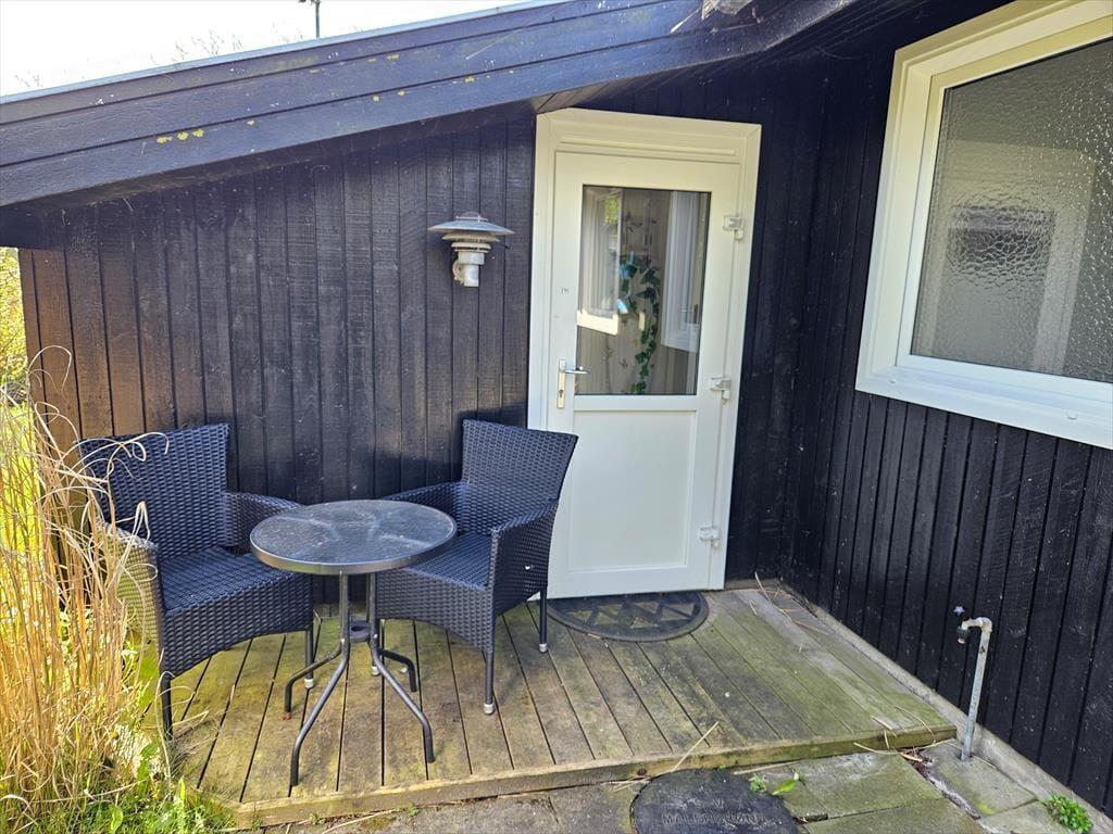 Sommerhuset har en stor og indbydende terrasse, der er som skabt til lange sommerdage. Terrassen er det perfekte sted at nyde din morgenkaffe i solen, grille en lækker middag eller bare lade tiden stå stille, mens du slapper af i havemøblerne. Den rolige og lukkede vej bidrager til en afslappet atmosfære, hvor du kan nyde ferielivet helt uforstyrret. Omkring huset finder du et skønt udeområde, der inviterer til leg og afslapning – og de fredelige omgivelser gør det nemt at føle sig i ét med naturen.