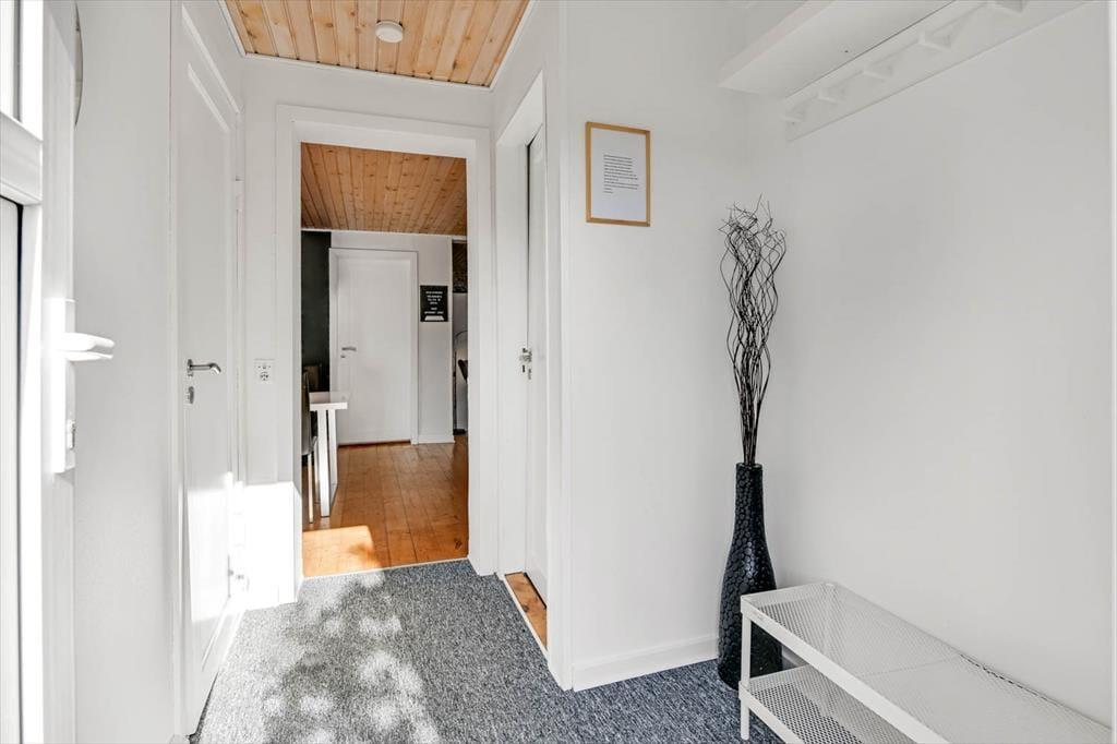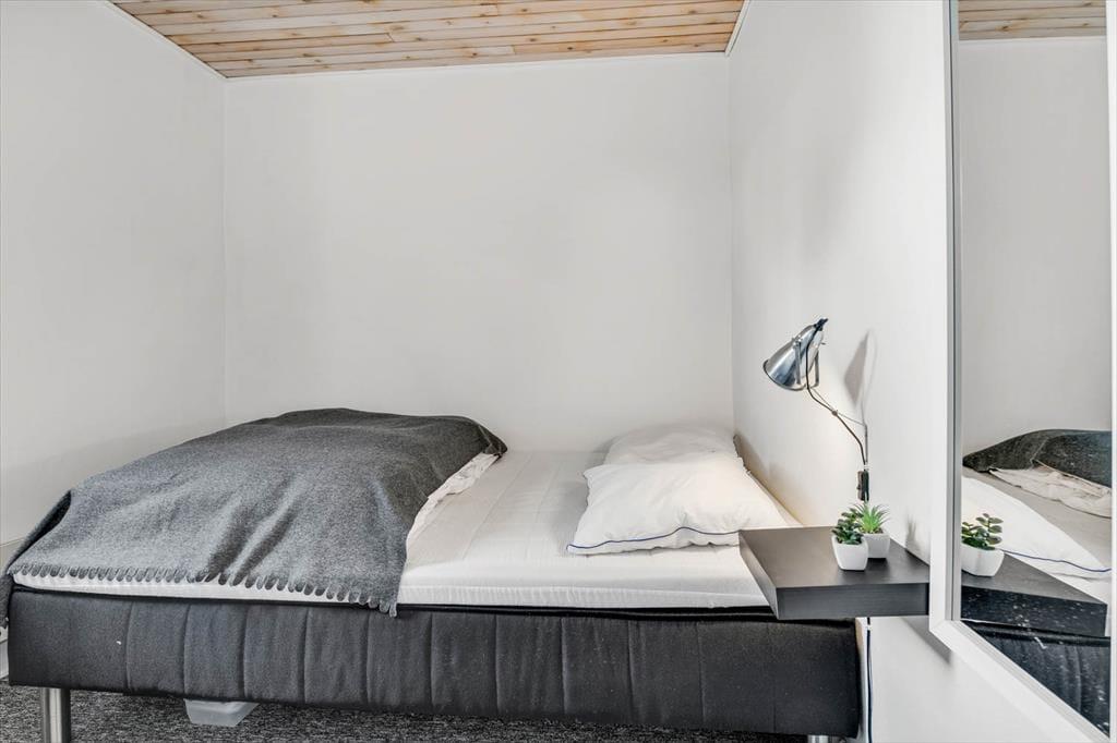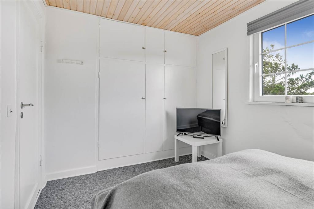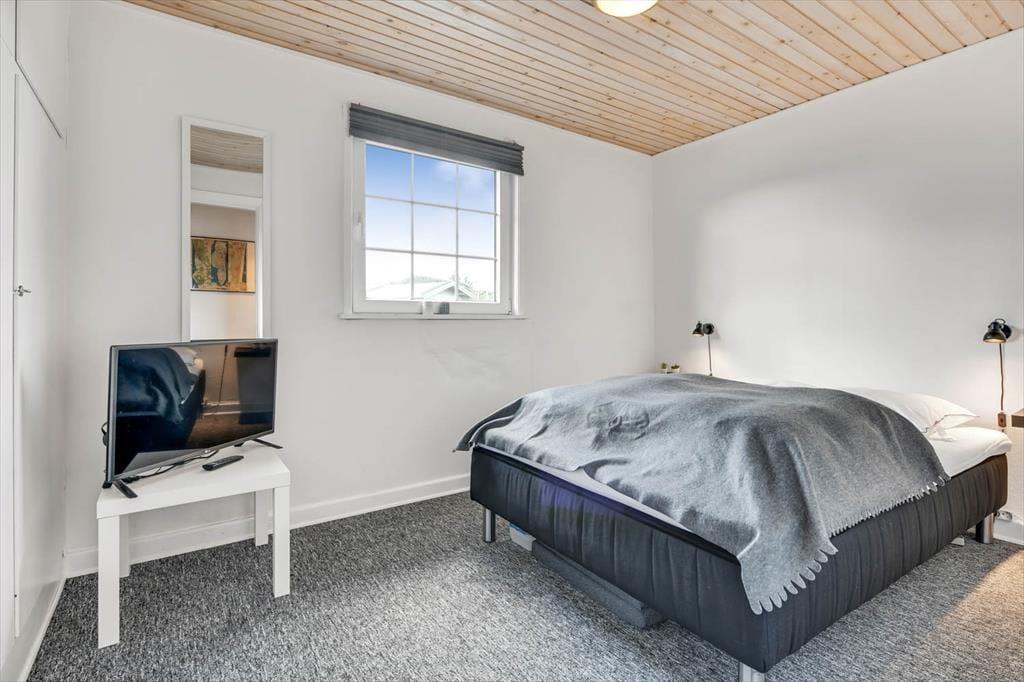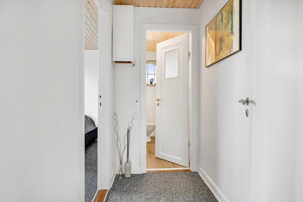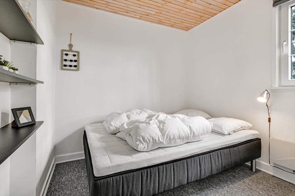 Indenfor mødes du af en varm og imødekommende stemning, hvor den enkle indretning og de fine detaljer skaber ro for øjet og plads til samvær. Opholdsrummet fungerer som husets naturlige hjerte, hvor det åbne køkken og stuen med spiseplads smelter sammen i ét – perfekt til lange feriedage med nærvær og hygge. De karakteristiske, runde vinduer i gavlen er med til at give huset sin egen særlige charme og lukker et smukt lys ind i rummet, der forandrer sig i takt med dagens timer. Her er hverken pyntet unødigt eller overmøbleret – og netop dét giver plads til, at du og dine kære kan sænke skuldrene og finde jer godt til rette. Uanset om I samles til morgenmad, brætspil eller aftensmad, føles huset som et trygt og rart sted at være.
