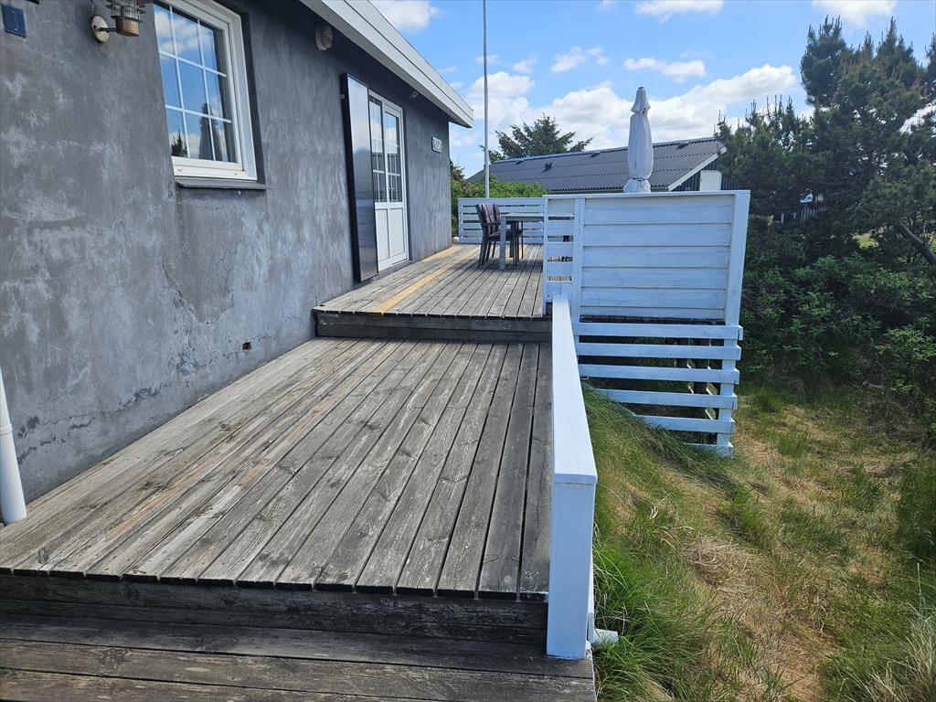 Udenfor folder ferielivet sig ud i fuldt flor. Sommerhuset er omgivet af gode terrasser med sol fra flere verdenshjørner, så du altid kan finde det perfekte sted til kaffekoppen, en god bog eller en lur i havestolen. Den sydvendte del af terrassen egner sig særlig godt til lange frokoster og aftener med grill og udeliv – mens de mere afskærmede kroge tilbyder læ og ro. Den grønne grund byder på både privatliv og frihed til at lege, og der er god plads til både børn og hunde, som kan færdes trygt omkring huset. Det føles nemt og uforstyrret – som ferie skal være. Og når solen er ved at gå ned, og lyset bliver blødt, er det en oplevelse i sig selv at sidde ude og lade dagens sidste stråler varme kinderne.