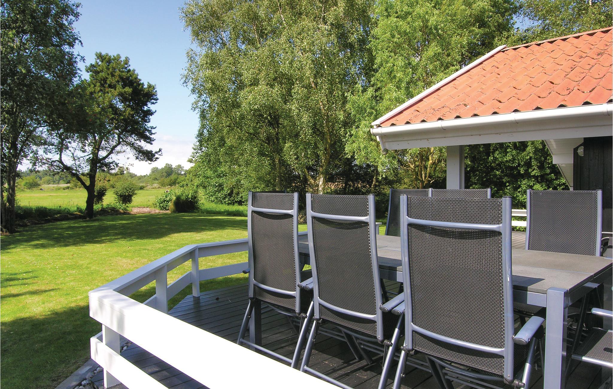 Dette feriehus opført i træ ligger i et af øens største sommerhusområder i en smuk plantage, hvor man kan få mange dejlige naturoplevelser og hvor der er adgang til den ca. 10 km lange sandstrand som tiltrækker både børnefamilier og naturelskere. Følger man den lille sti som går helt ud til *Ristinge Hale, kan man opleve den flotte udsigt over havet mod Marstal på Ærø - her ses også de små holme som findes mellem Langeland og Ærø. Især fugleinteresserede kan få sig nogle fantastiske oplevelser, hvis man kører sydpå fra Ristinge mod Tryggelev Nor. Sammen med Nørreballe Nor og udgør disse to nor et af Danmarks naturreservater, hvor man i de senere år har observeret ynglende havørene - nogle som ikke er blevet set i Danmark i en periode på over 100 år. 2 af husets i alt 8 sovepladser findes i en alkove i et hjørne af stuen.
