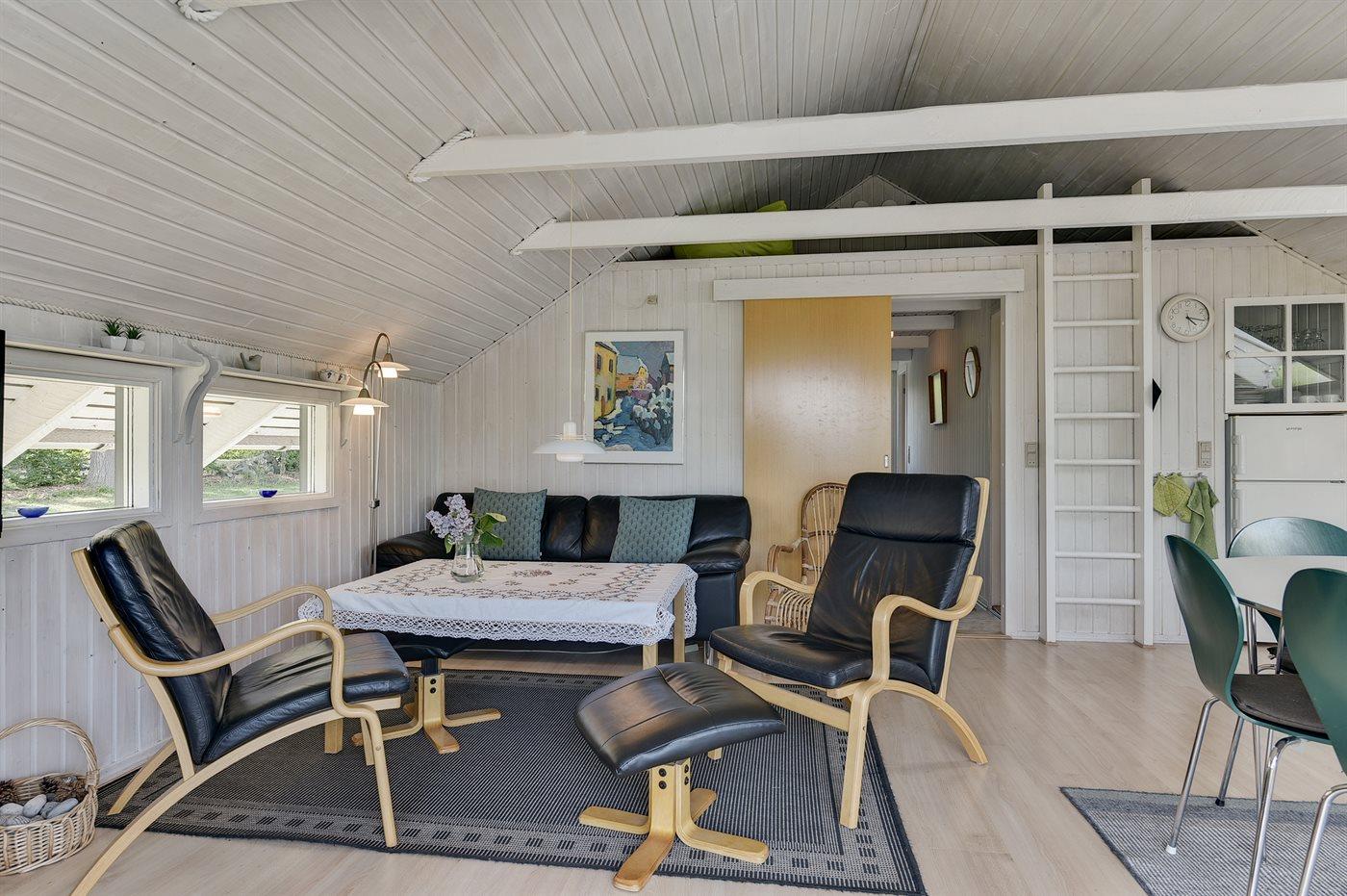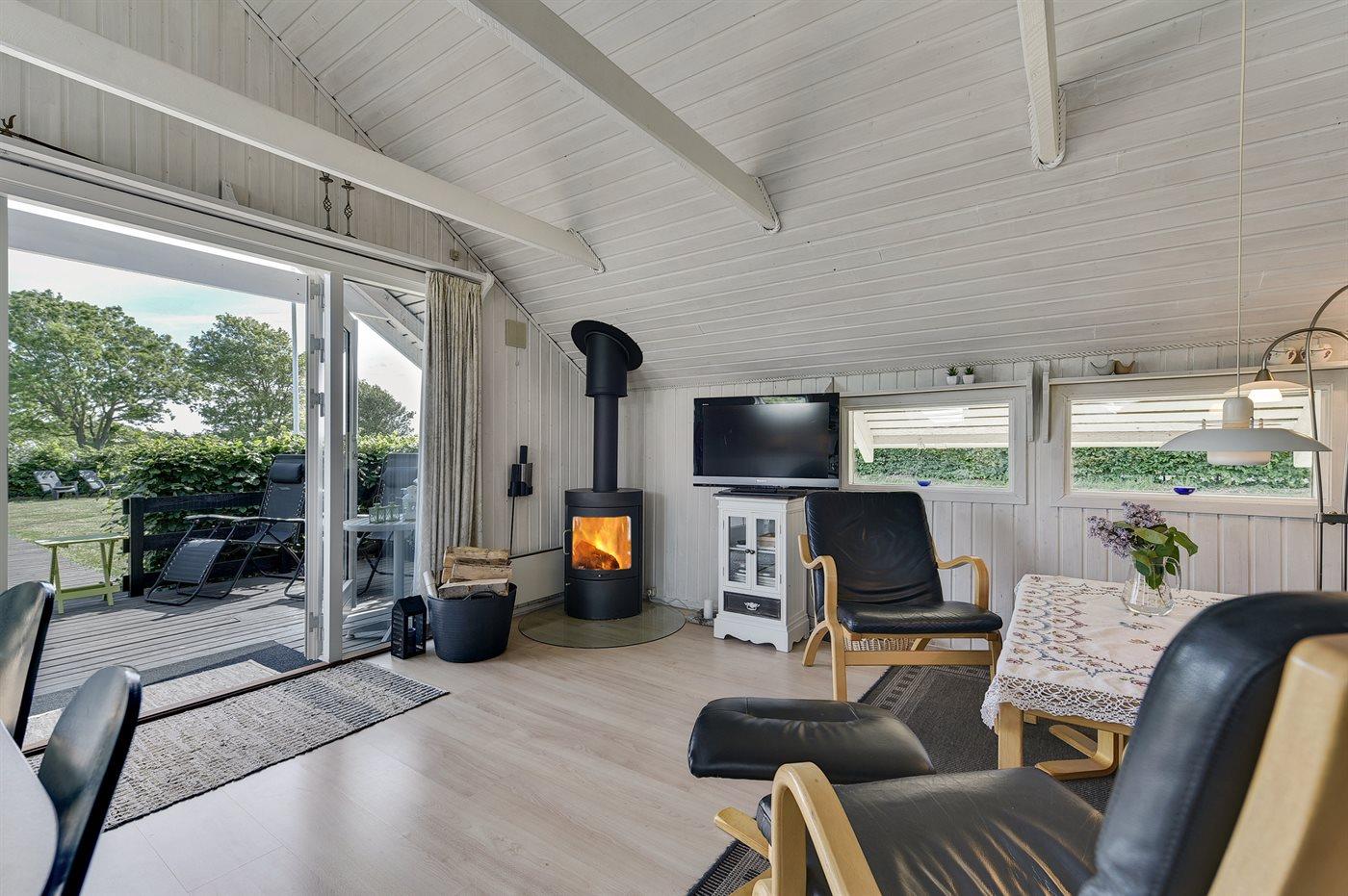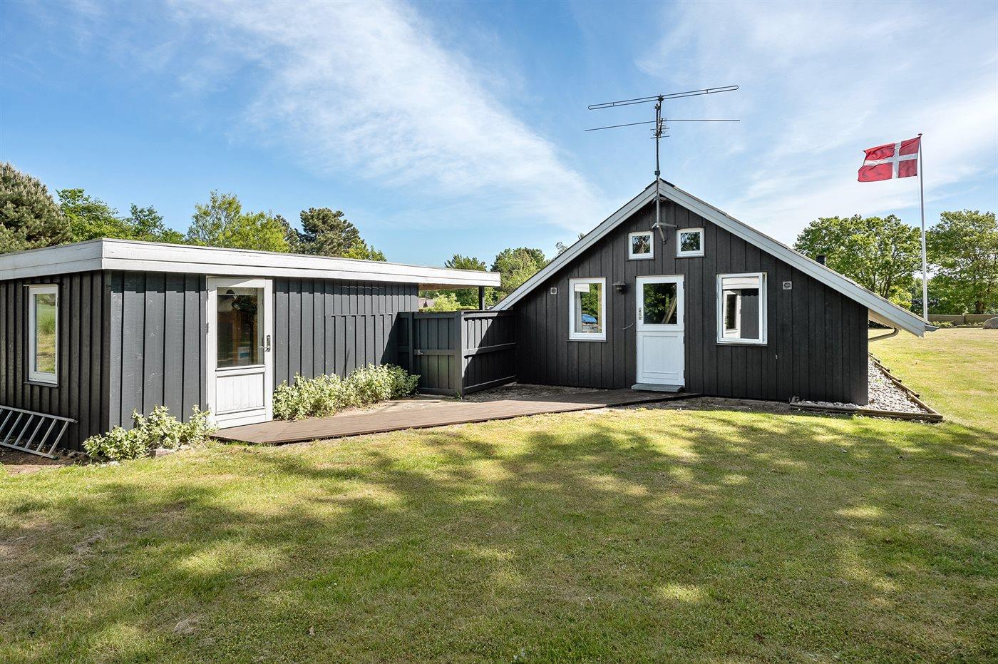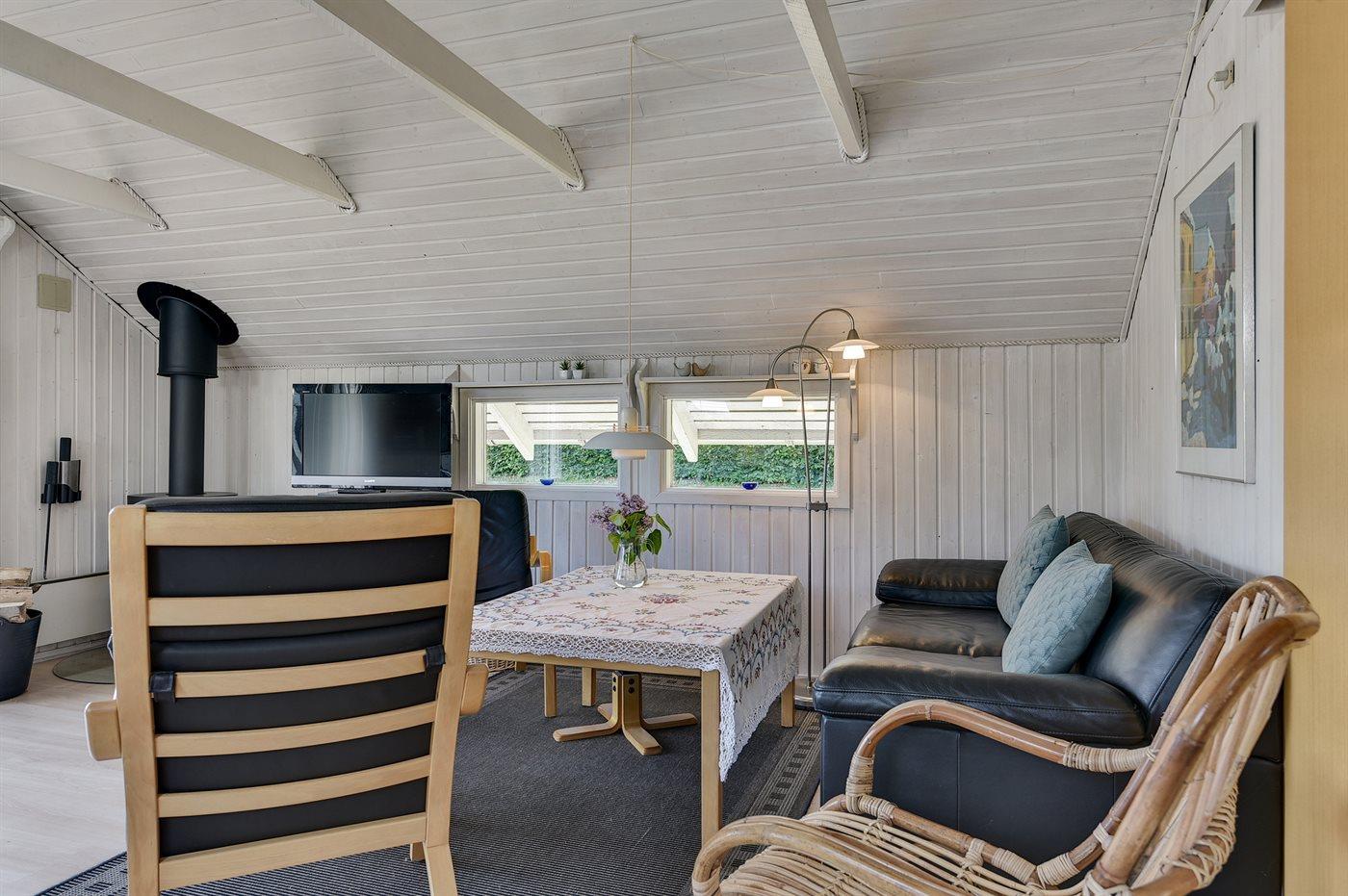 Pænt og velholdt sommerhus i træ, bygget i 1980 og renoveret i 2011, beliggende 700 m. fra vandet på en dejlig velanlagt havegrund med havkig fra både hus og grund. Til huset hører en solrig, delvist overdækket og afskærmet terrasse med havemøbler, hvorfra der er en skøn udsigt. Indvendigt fremtræder huset lyst og venligt med lofter til kip og en hyggelig indretning. Det åbne køkken er bl.a. udstyret med opvaskemaskine, varmluftovn, komfur med keramiske kogeplader samt fryser. I opholdsstuen findes der brændeovn, TV, DVD-afspiller, PlayStation2 spillekonsol samt radio. Sovepladserne fordeler sig på 1 værelse med dobbeltseng og 1 værelse med 2 enkeltsenge i huset samt 2 sovepladser i annekset i henholdsvis en enkeltseng eller i en køjeseng. Husets badeværelse har bruseniche. Der er installeret energibesparende varmepumpe i huset og gulvbelægningen er af både træ, klinker og linoleum. Til børnene findes der gynge på grunden. Et skønt sommerhus beliggende i et naturskønt område tæt på badestrand og med gode fiskemuligheder i nærheden.