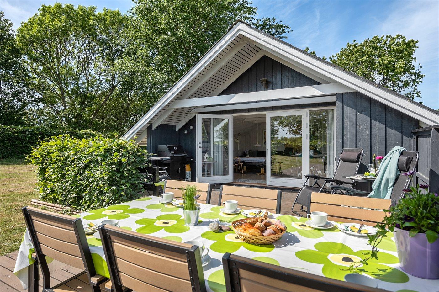 Hyggeligt og velholdt sommerhus i Humble med havkig og solrig terrasse tæt på vandet.