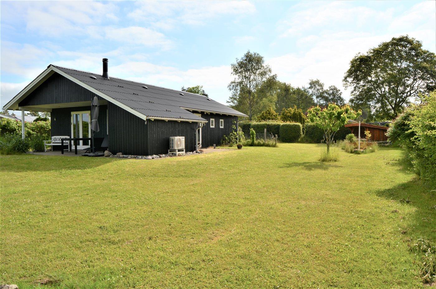 I et område med alsidig natur og god strand ligger dette pæne og lyst indrettede sommerhus, bygget i 1991 og senest moderniseret i 2022, på en stor havegrund med god plads til boldspil og leg. Til huset hører såvel åben som overdækket terrasse.
