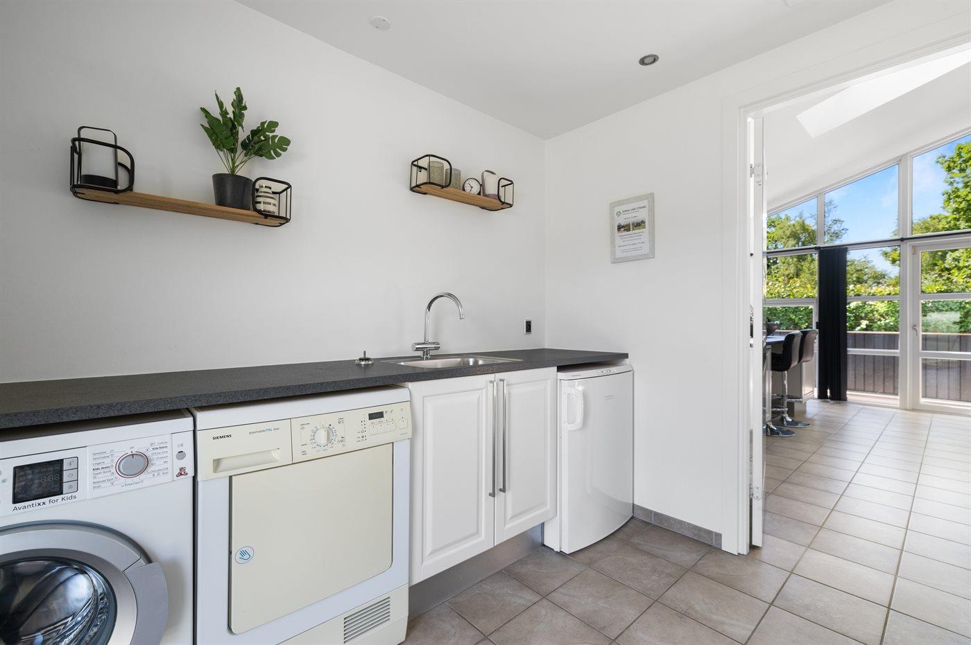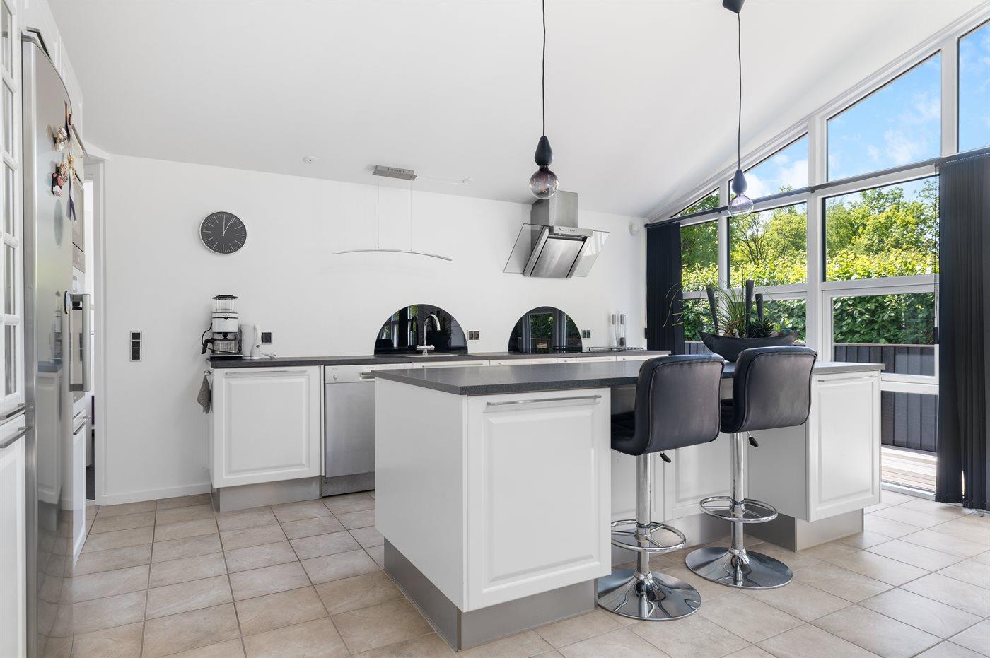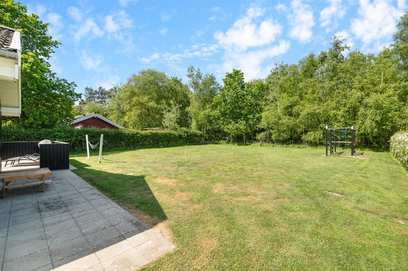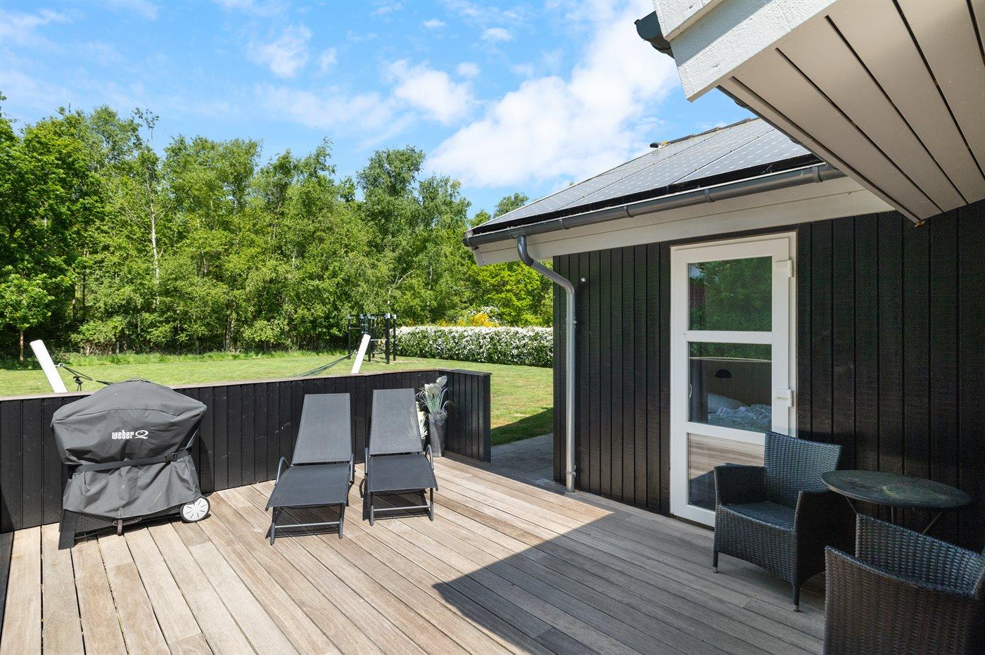 Huset er godt indrettet og har et stort åbent og lyst køkken-alrum, hvor der er åbnet op til kip, så der er et flot lysindfald fra de store sydvest-vendte vinduespartier. Omkring huset findes der flere terrasser, således der altid er mulighed for at finde et sted med sol. I den store have er der god plads til udendørs aktiviteter.