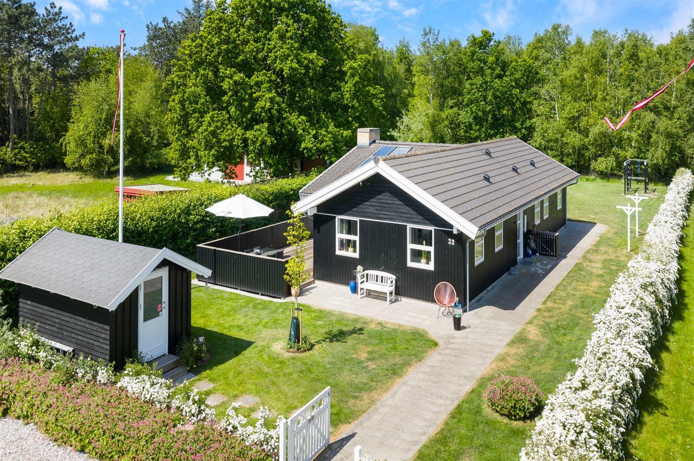 Ferieboligen er beliggende på en 1200 m² stor havegrund. Der er 280 m til havet. Nærmeste forretning er beliggende i en afstand af 3200 m. Til ferieboligen hører åbent terrasseareal. Gynge. Grill til rådighed. Parkering ved ferieboligen.