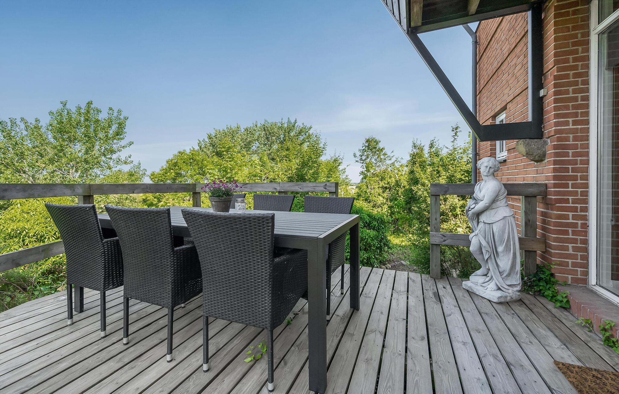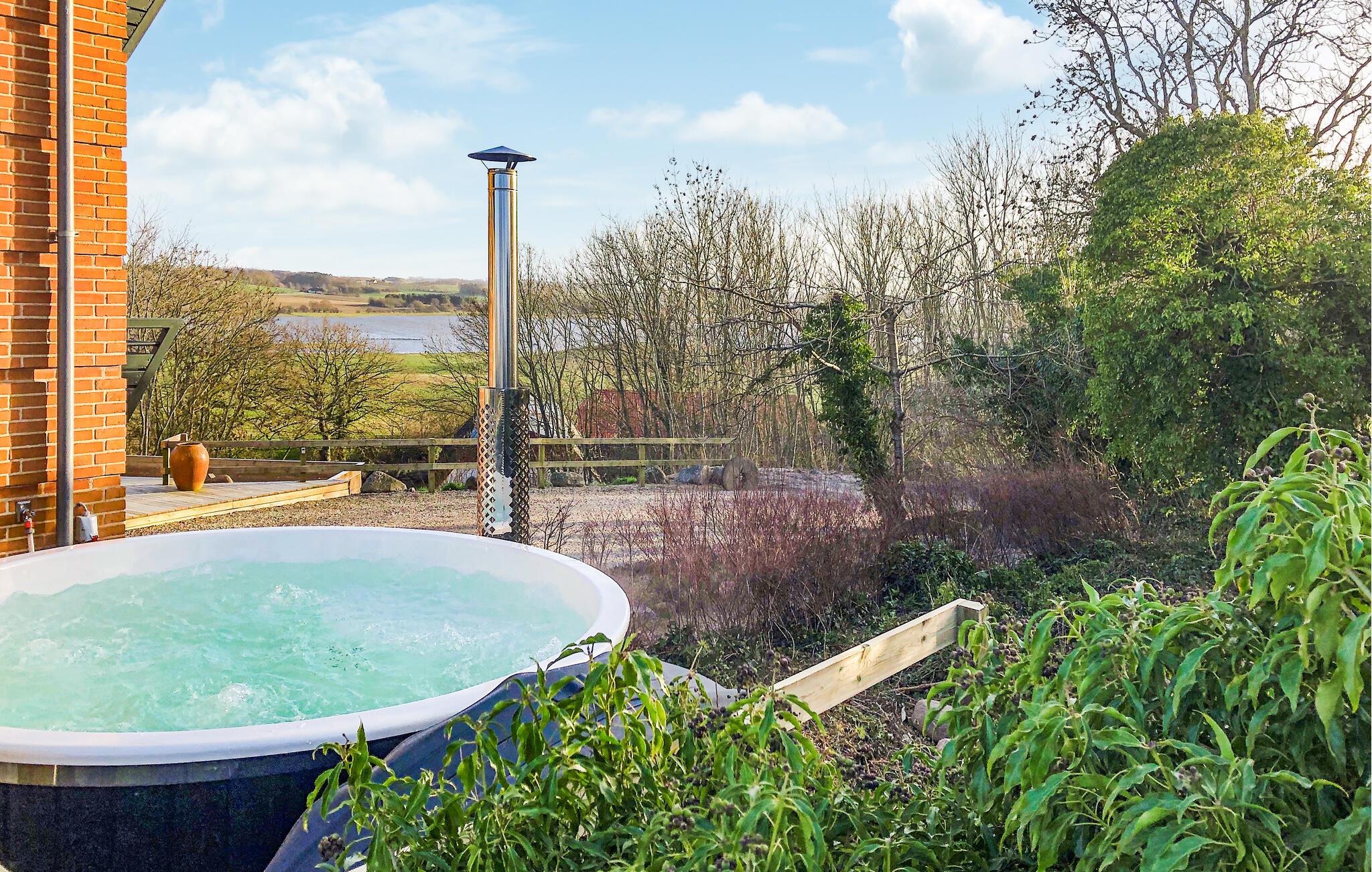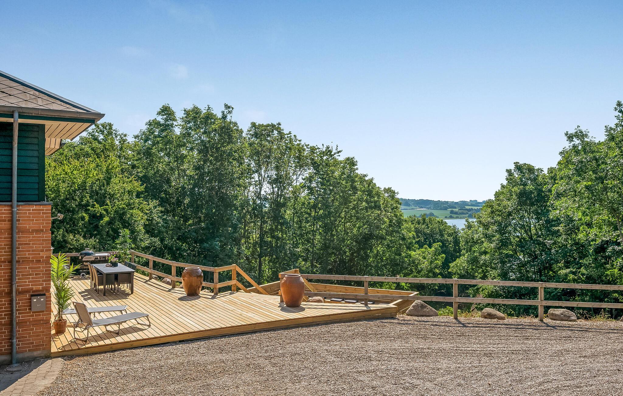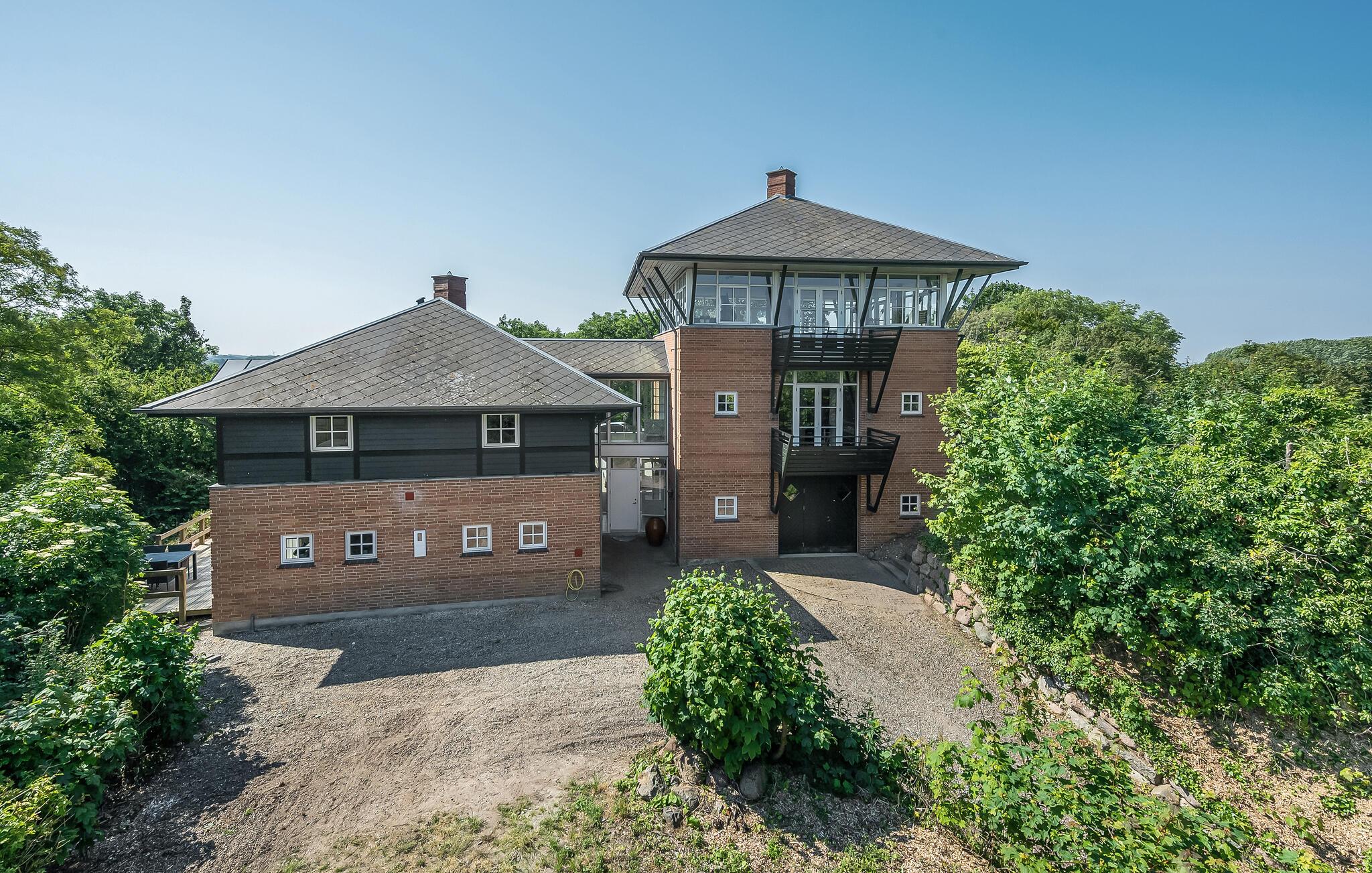 Stort kvalitetsbygget hus på Langeland med panoramaudsigt, aktivitetsrum og spabad både inde og ude.