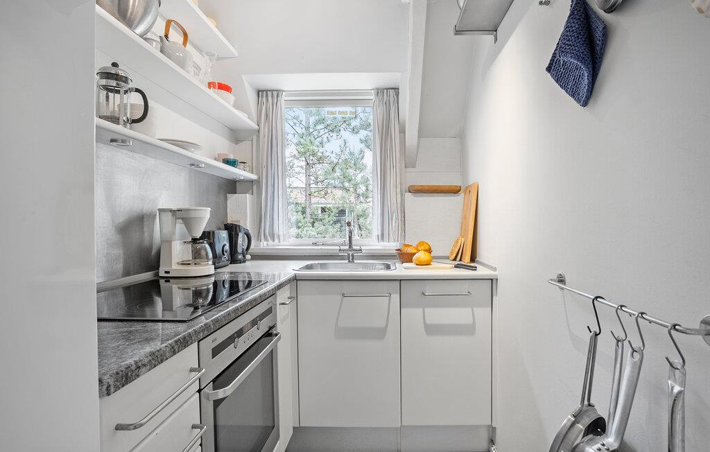Så snart I træder ind i huset, vil I føle jer hjemme. Store vinduespartier i kombination med skrånende loft med synlige træbjælker skaber en lys, rummelig og hyggelig atmosfære. Her kan I virkelig gå ned i gear og glemme alt om hverdagen. Start dagen med at tilberede en lækker morgenmad i husets køkken, som derefter kan nydes på en af terrasserne. Her kan I sole jer eller læse en god bog gennem dagen, mens børnene løber rundt og leger på den store naturgrund eller gynger. Om aftenen kan I afslutte en dejlig feriedag med at se fjernsyn i TV-stuen med åbent til kip på loftet. Huset er også meget velegnet til vinterophold. Det er nemlig helårsisoleret og har gulvvarme på badeværelset. Ydermere er der brændeovn i stuen, som I kan tænde op i efter en frisk gåtur. Til huset hører også et hyggeligt anneks med to køjesenge. Længden af køjesengene er kun 1,8 m.