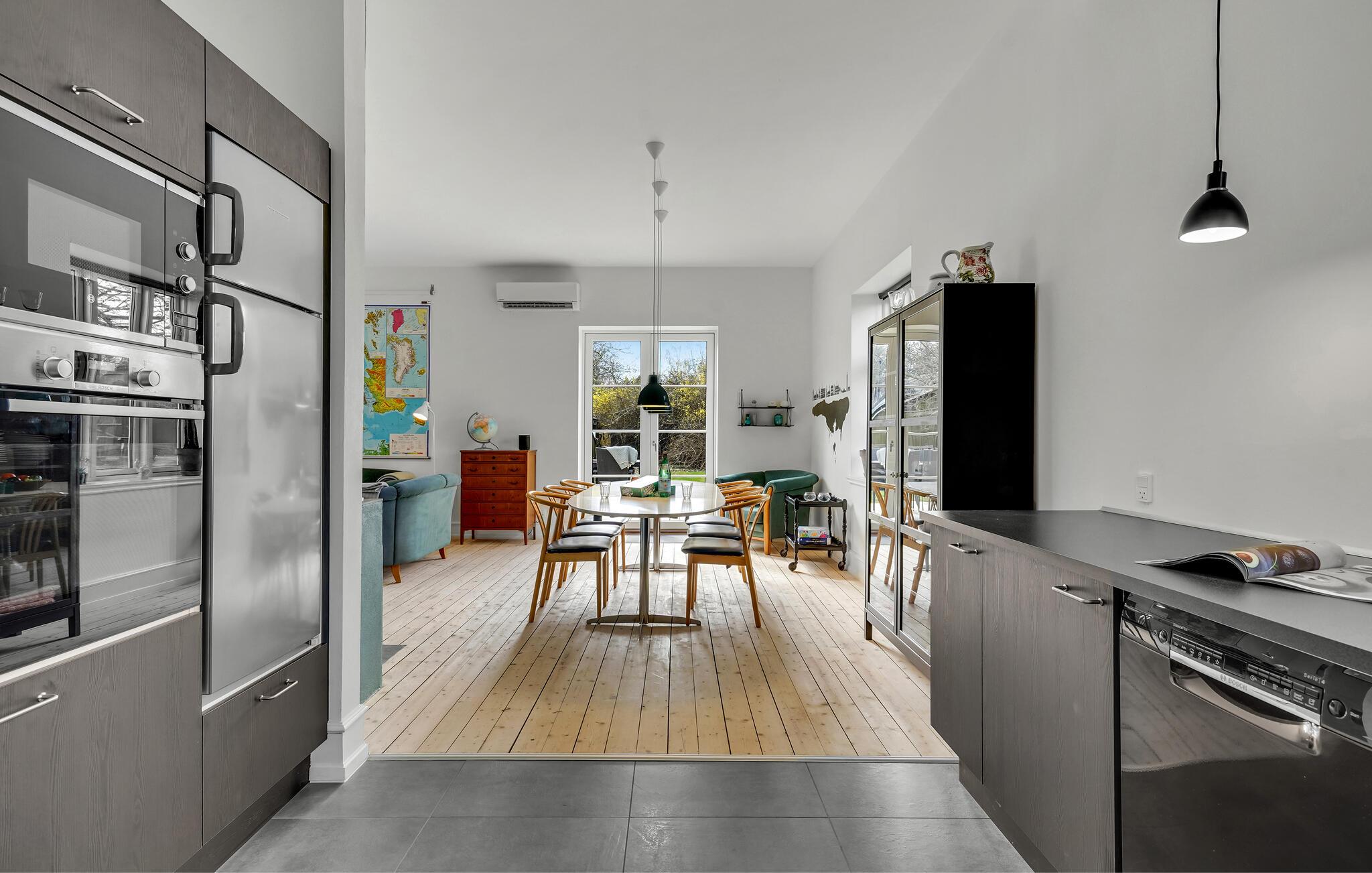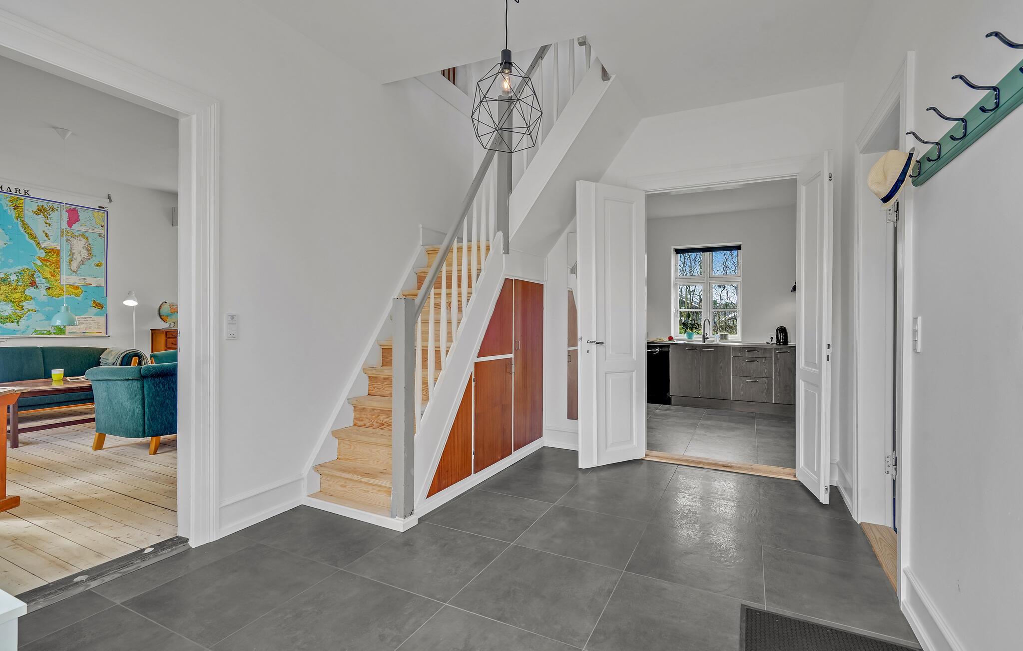 Velkommen til Langeland og denne dejlige plet, hvor alt ånder fred og idyl. I Nyby ligger dette dejlige feriehus, som er fordelt over to etager og består af hyggelige, åbne fællesarealer og en indretning, der er elegant og personlig. Giv jer god tid til at sammensætte aftenens menu efter en lang dag på farten, og sæt jer senere til rette med brætspil rundt om spisebordet. På en kold dag sørger brændeovnen for ekstra stemning og varme. Der er legeredskaber til børnene i haven og en overdækket terrasse, hvor I kan tænde bål i alle årets måneder. Sæt jer med en kop kaffe i solen, mens børnene løber og leger.