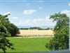 Charmerende stråtækt feriehus i roligt område med udsigt over marker og adgang til natur og strand.