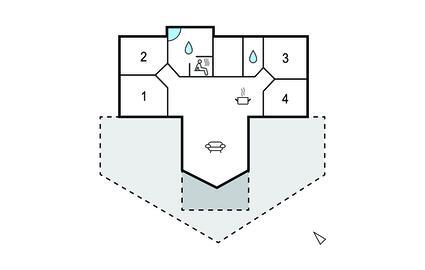 Badeværelse (nr. 1) - WC. Varmt og koldt vand. Bruser