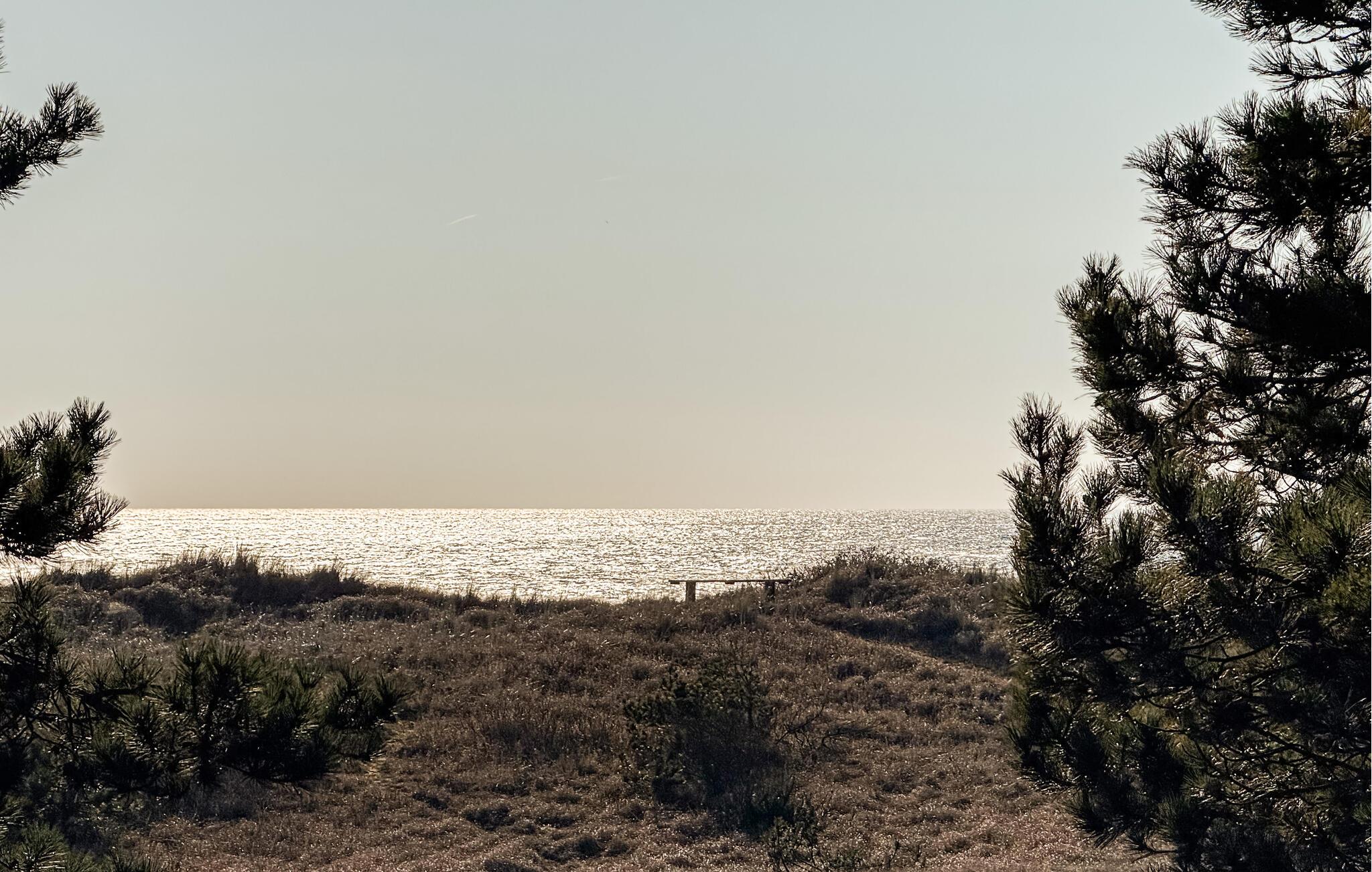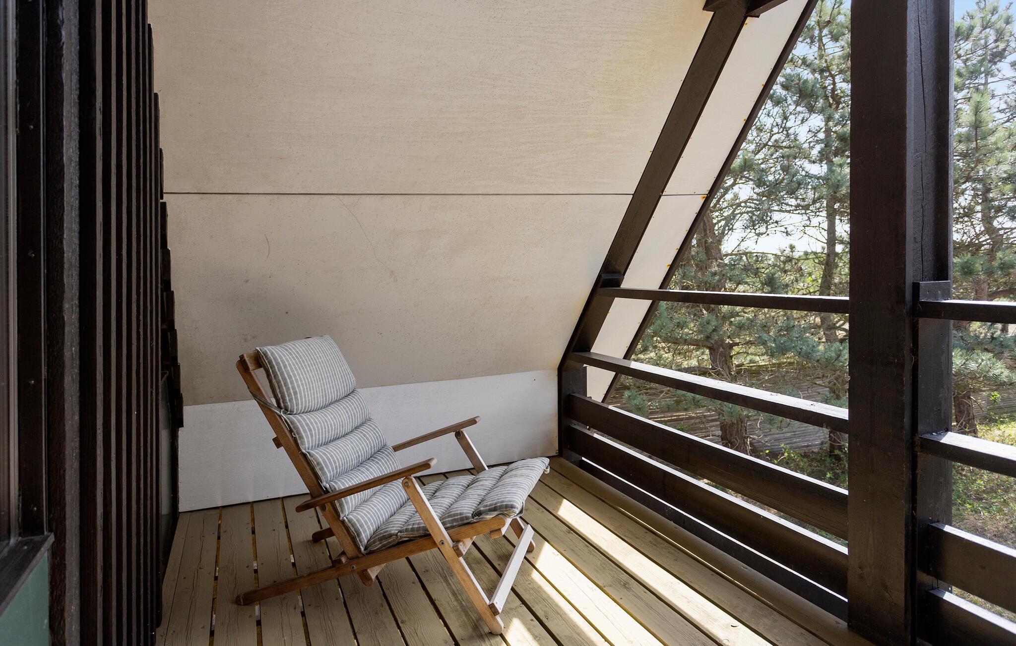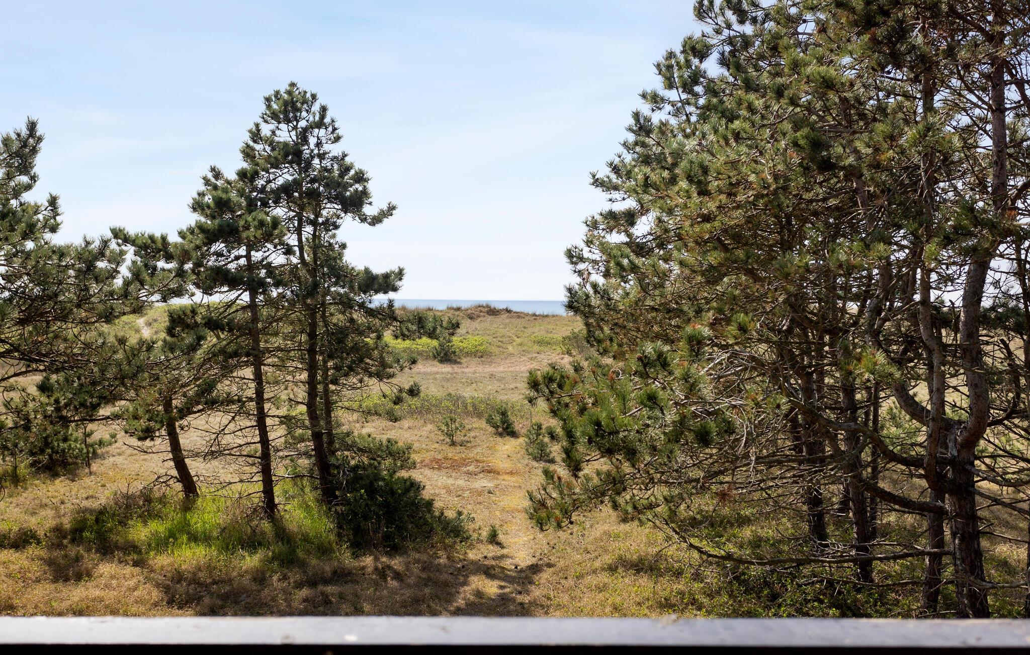 Gå også ud på altanen. Herfra har I en smuk udsigt hele vejen til havet. Begynd dagene med morgenmad på terrassen foran hoveddøren og lyt til vindens susen i træerne. Det rummelige naturområde byder på masser af plads til at lege, solbade eller holde picnic. Udnyt den rolige beliggenhed til at lægge hverdagen bag jer.