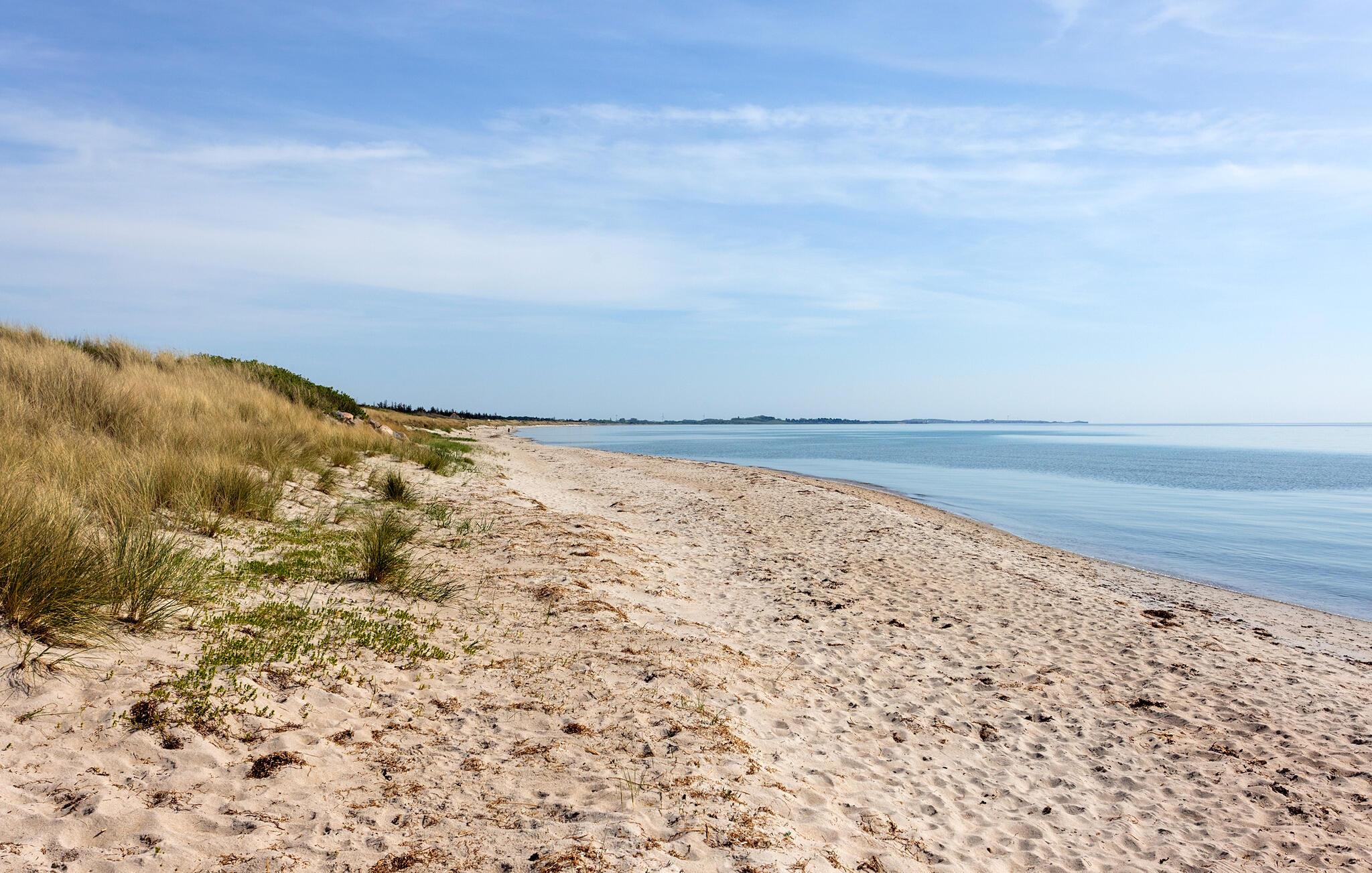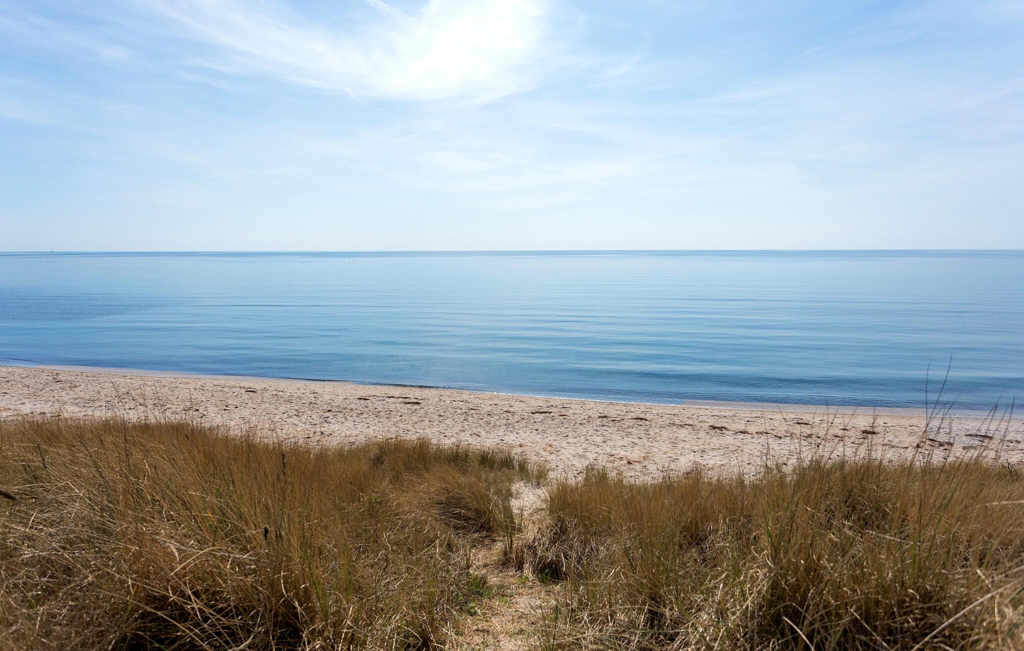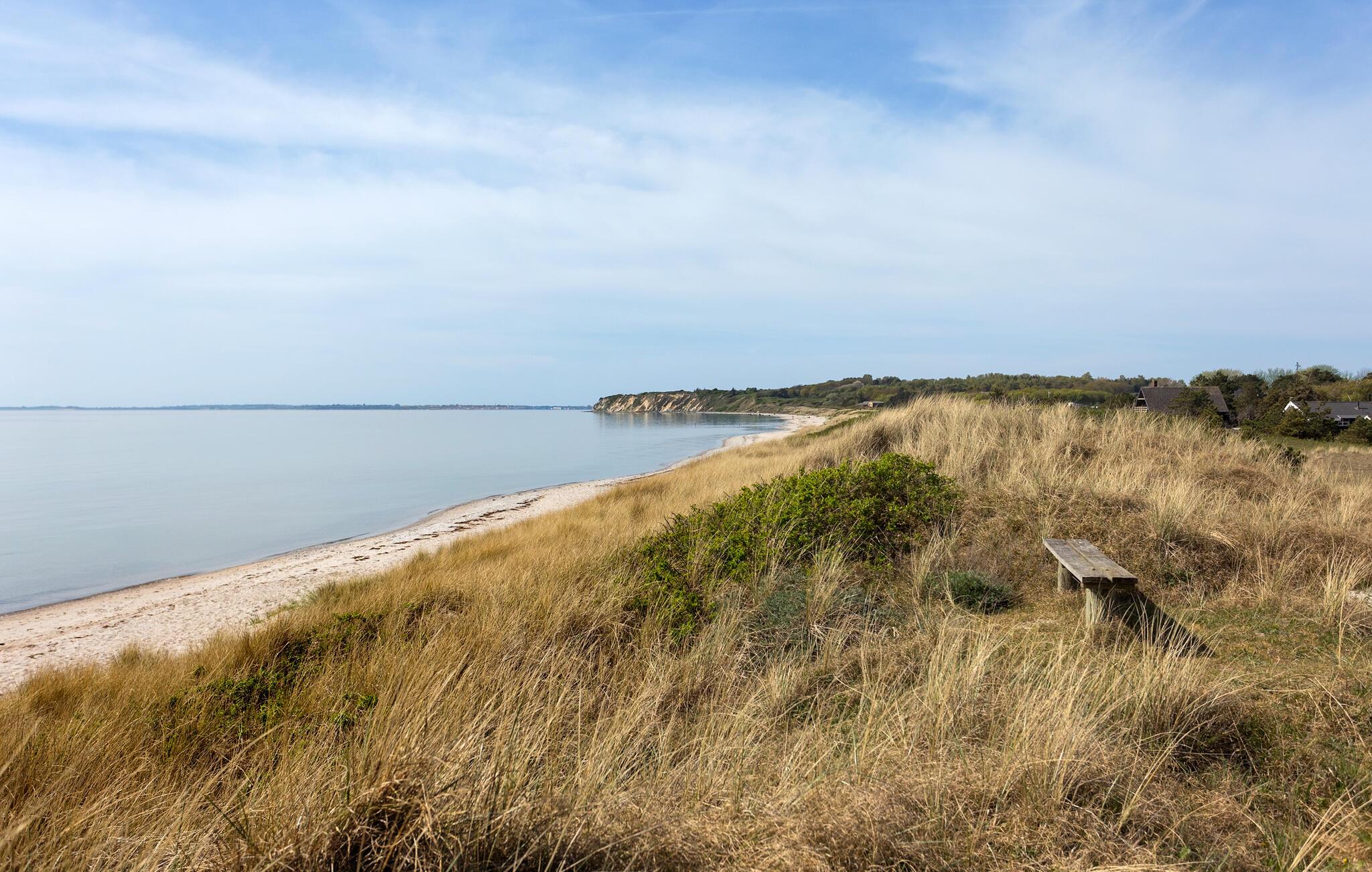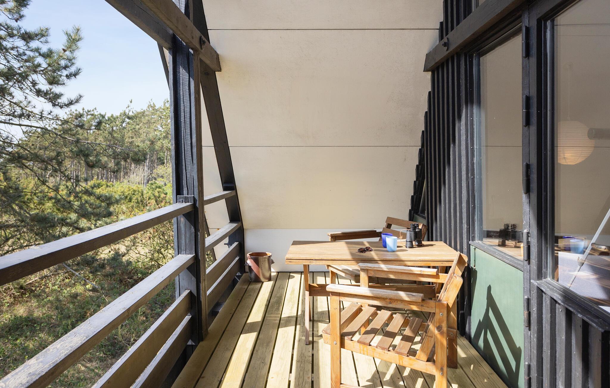 Gå også ud på altanen. Herfra har I en smuk udsigt hele vejen til havet. Begynd dagene med morgenmad på terrassen foran hoveddøren og lyt til vindens susen i træerne. Det rummelige naturområde byder på masser af plads til at lege, solbade eller holde picnic. Udnyt den rolige beliggenhed til at lægge hverdagen bag jer.
