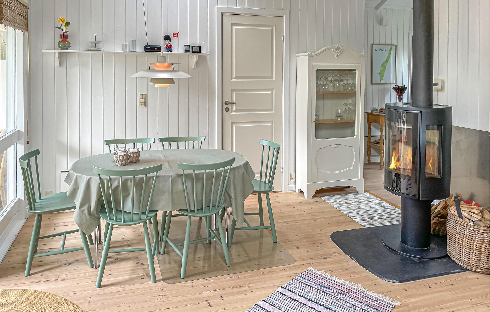 Velkommen til Langeland og dette hyggelige hus, som bliver jeres base på øen. Find jer til rette i det farvestrålende træhus med en kop kaffe, tilbered lækre måltider i det praktiske køkken eller slap af i stuen og se de knitrende flammer i brændeovnen.