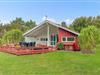 Hyggeligt træsommerhus med terrasse og haveudsigt