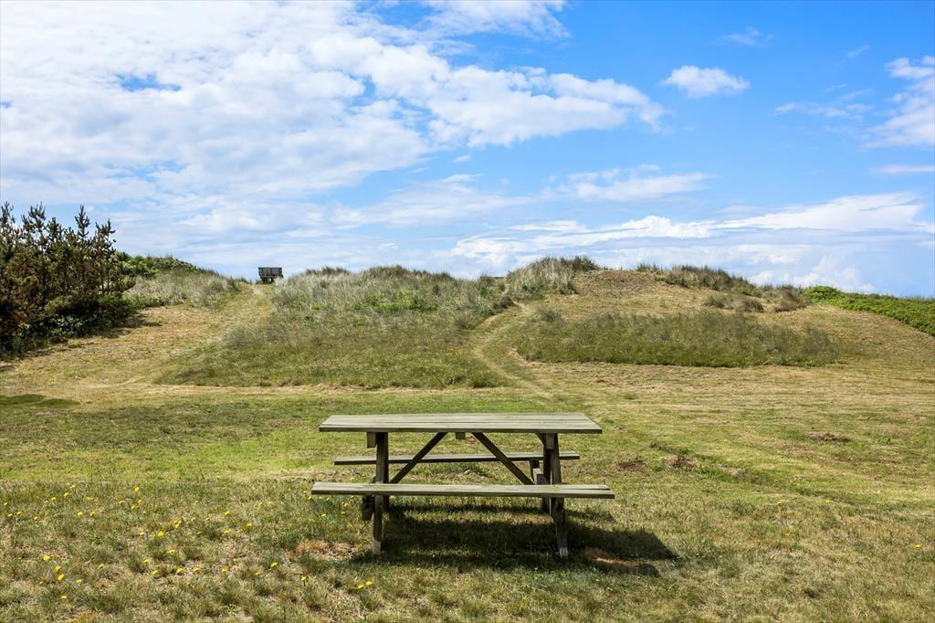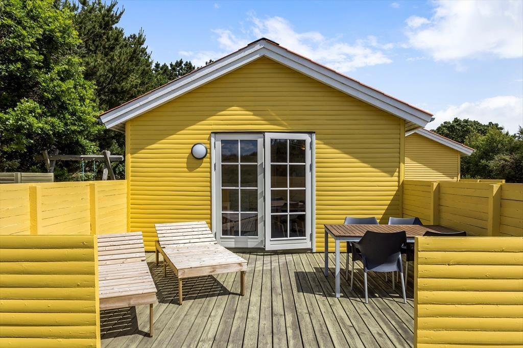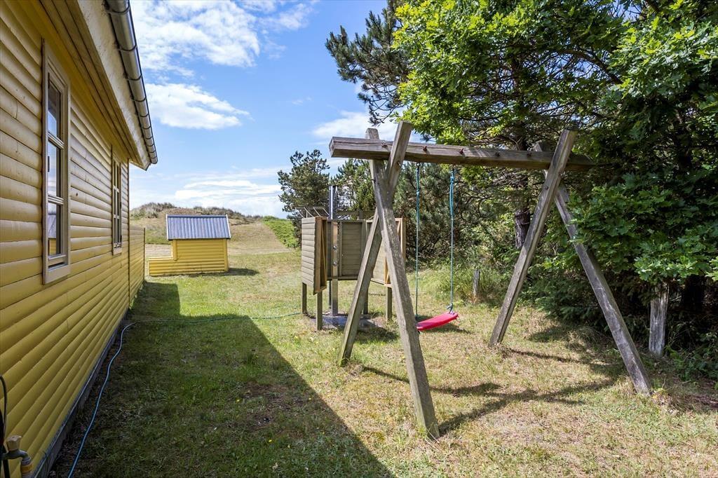 Sommerhusets store klitgrund indbyder til timevis af udendørs aktiviteter, og den dejlige terrasse er det perfekte sted at nyde solens stråler. Her kan du tilbringe lange sommeraftener med en god bog eller en middag under åben himmel. Kun 20 meter fra huset ligger stranden, hvor du kan tage en forfriskende dukkert i det klare vand eller gå en tur langs vandkanten. Efter en dag på stranden kan du skylle sandet af under den praktiske udebruser, før du slapper af på terrassen. Den fantastiske beliggenhed giver mulighed for at nyde naturen og havet på alle tidspunkter af dagen.
