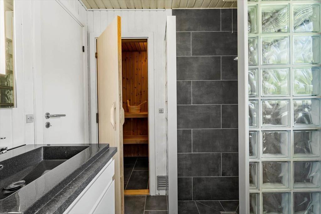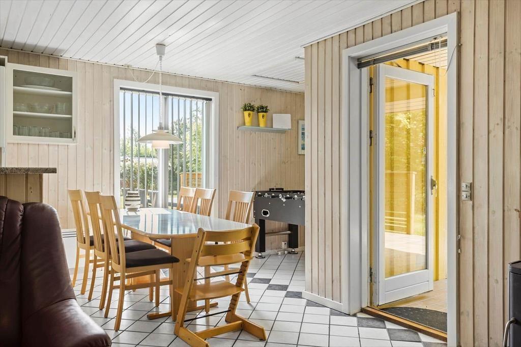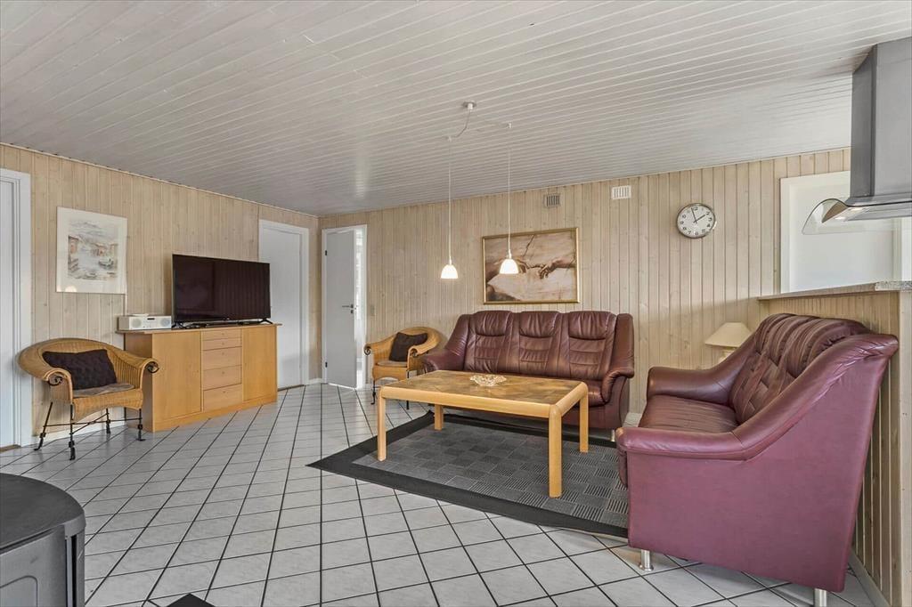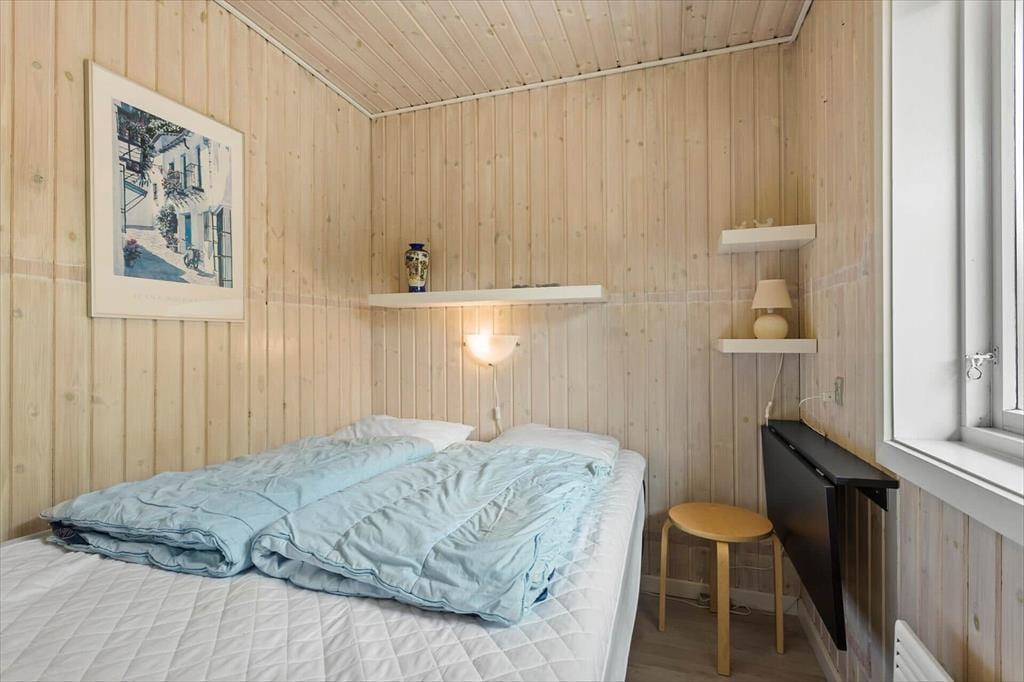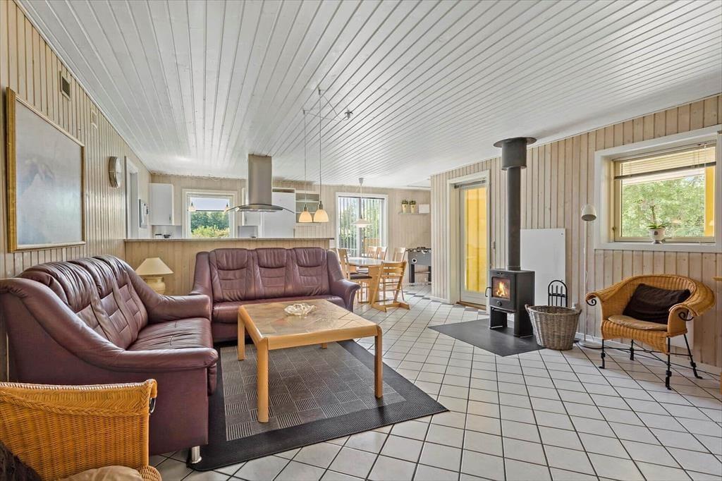 Når I træder indenfor i dette rummelige sommerhus, vil I straks mærke den indbydende atmosfære. Huset er lyst og venligt med en indretning, der emmer af klassisk sommerhuscharme. Den store stue med brændeovn bliver hurtigt familiens samlingspunkt, hvor I kan slappe af med en god bog, spille brætspil eller måske tage en venskabelig dyst i bordfodbold. Køkkenet er åbent og funktionelt, så I nemt kan tilberede dagens måltider, mens I hygger jer sammen. Med fire soveværelser er der plads til, at hele familien kan trække sig tilbage og nyde en god nats søvn. Badeværelset er moderne og byder på en sauna, hvor I kan varme jer efter en frisk gåtur langs stranden.