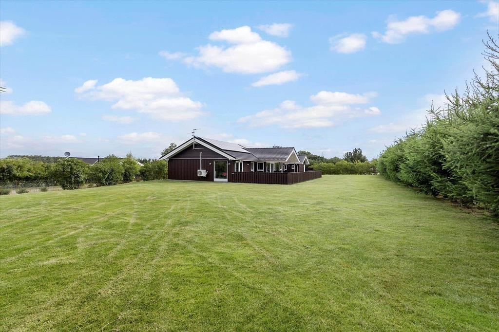 Når vejret viser sig fra sin bedste side, er den store, delvist overdækkede terrasse det oplagte sted at tilbringe tiden. Her kan I nyde morgenkaffen i solen, tilberede lækre måltider på grillen og samles om aftensmaden under åben himmel. Den store have med græsplæne giver rig mulighed for udendørs aktiviteter og leg for både børn og voksne – eller måske en stille stund i solen med lyden af fuglekvidder og vinden i træerne som baggrundsmusik. Hvis I har brug for en pause fra solen, kan I trække jer tilbage under den overdækkede del af terrassen og nyde skyggen, mens I stadig er tæt på naturen og den friske luft.
