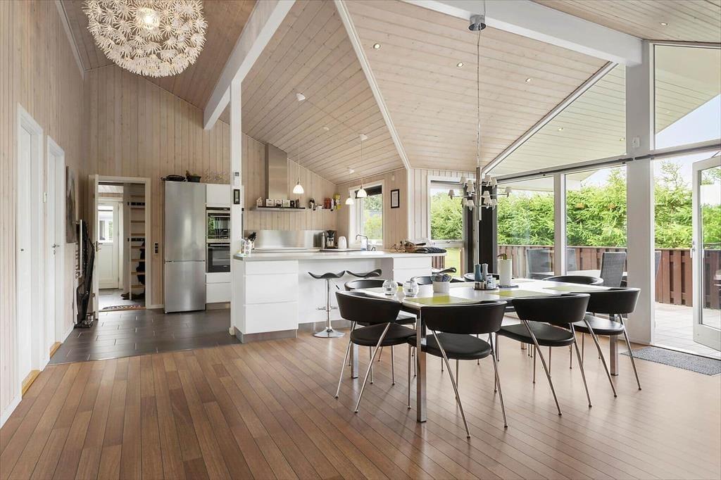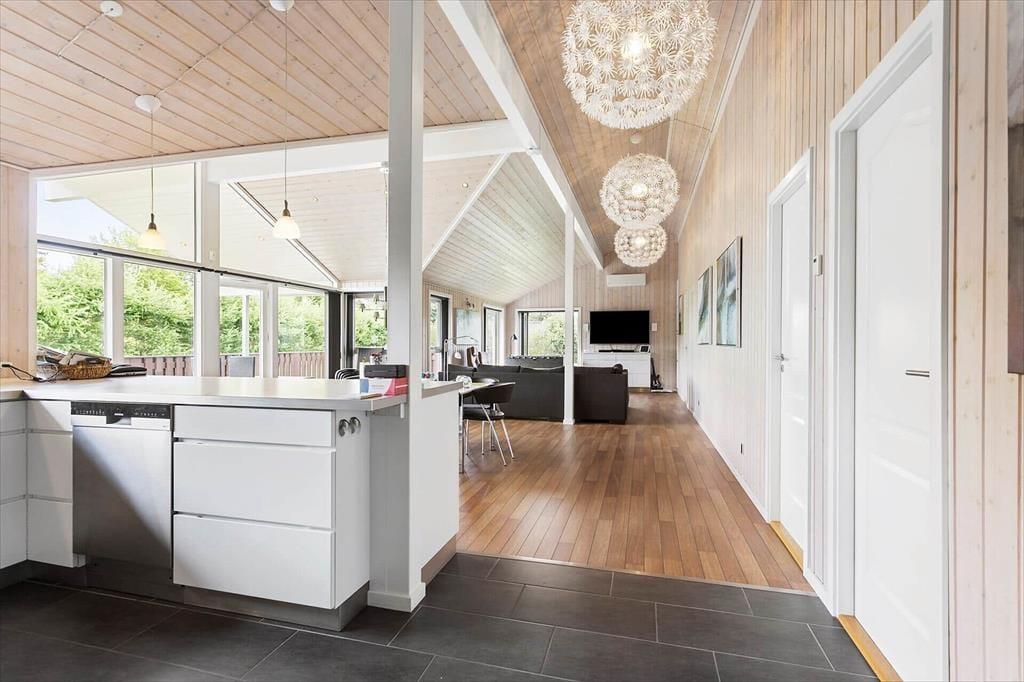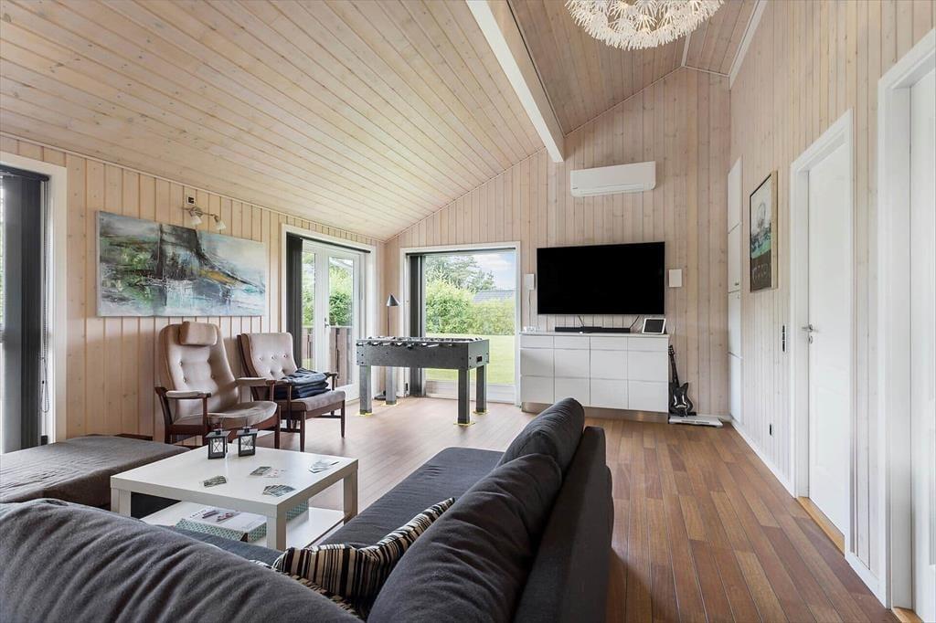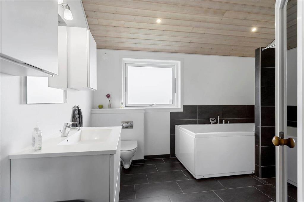 Når I træder ind i sommerhuset, bliver I mødt af en lys og indbydende atmosfære, hvor moderne indretning og komfortable møbler skaber en hyggelig base for jeres ophold. Med fire soveværelser og to badeværelser er der god plads til, at op til otte personer kan nyde ferien sammen. Det ene badeværelse er endda udstyret med både spabad og sauna, så I kan forkæle jer selv med en gang wellness efter en dag fyldt med aktiviteter. Husets hjerte er det åbne køkken-alrum, hvor der er plads til fælles madlavning og hyggelige måltider ved spisebordet. Stuen indbyder til afslappende stunder med en god bog eller en spændende film, og hvis I har lyst til lidt konkurrence, kan I gå i aktivitetsrummet, hvor der både er billard, bordtennis og bordfodbold.