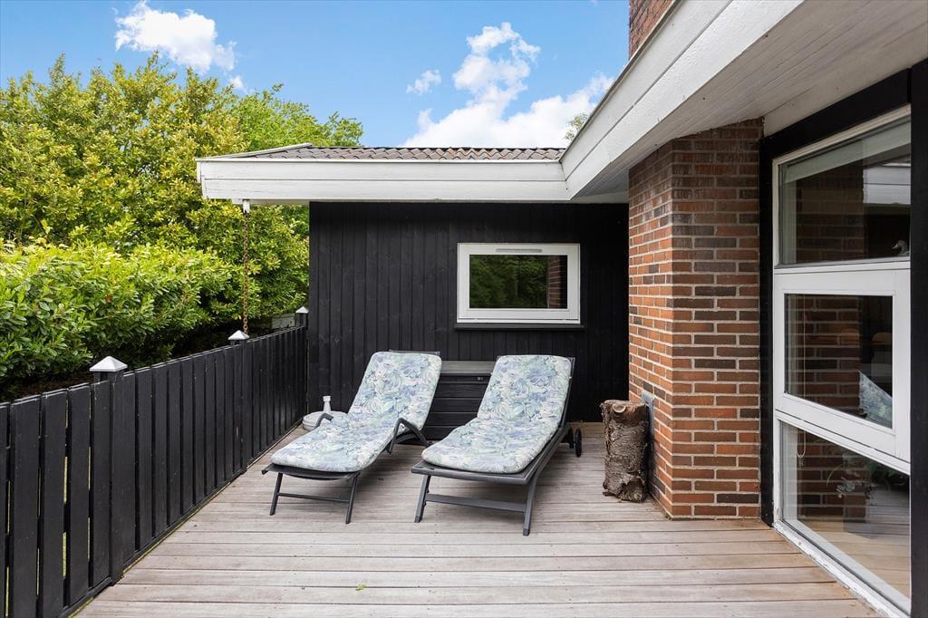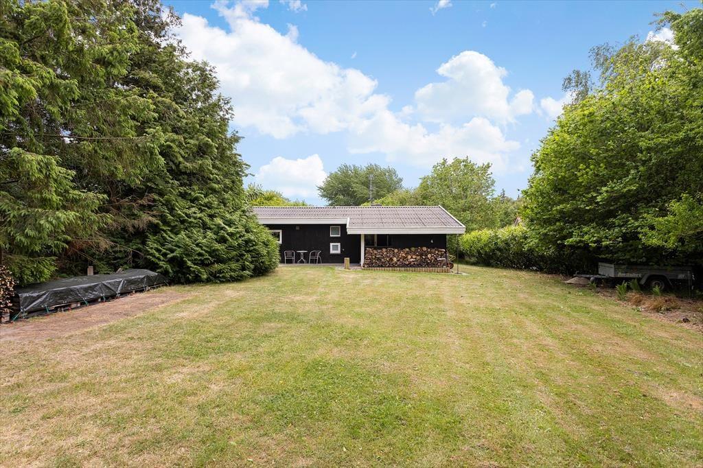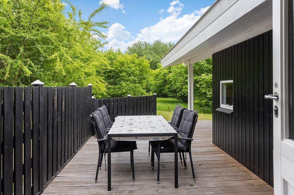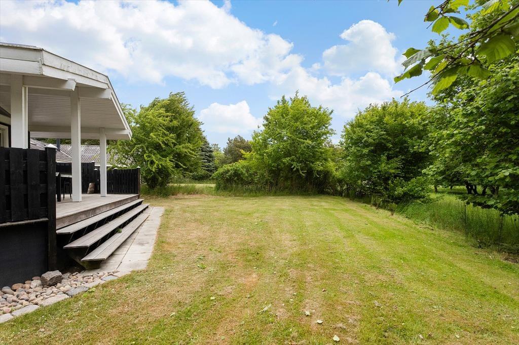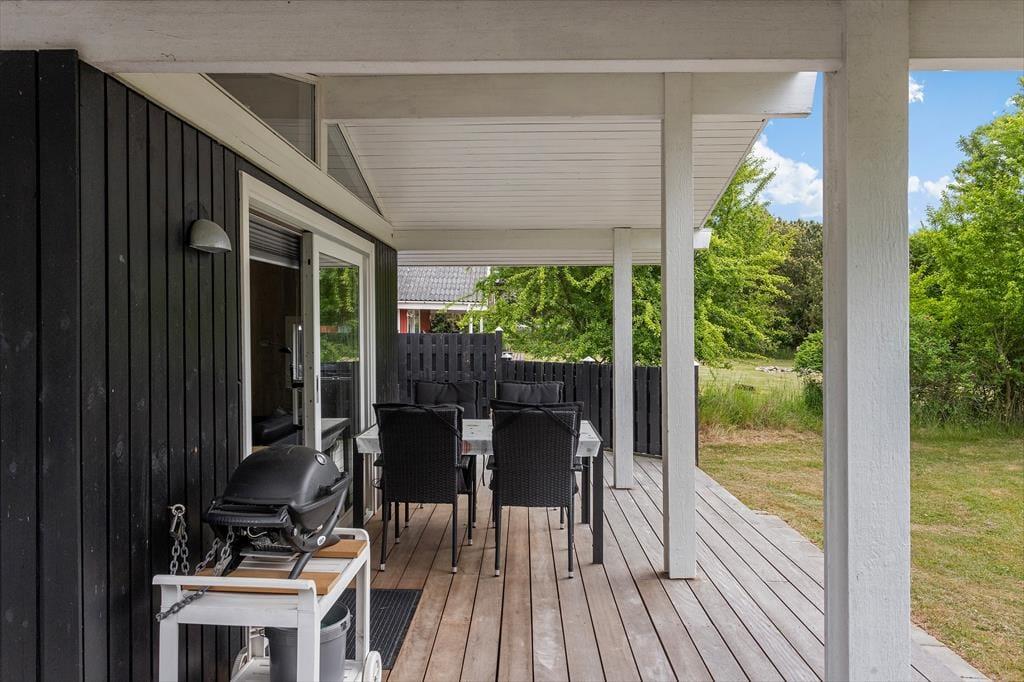 Udenfor fortsætter hyggen på den delvist overdækkede terrasse, hvor du kan nyde de lange sommeraftener med grillmad og et godt glas vin. Terrassen er det ideelle sted at starte dagen med en kop kaffe, mens solen langsomt stiger op over horisonten. Haven er omgivet af frodig natur, og her kan du virkelig mærke feriefreden sænke sig. Kun 660 meter fra sommerhuset ligger Ristinges vidunderlige strand, en af Langelands absolut bedste, hvor du kan tilbringe dagene med at bade, bygge sandslotte og nyde den friske havluft. Den korte afstand til stranden gør det nemt at tage en spontan dukkert, når lysten melder sig.