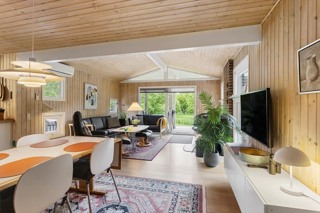 Når du træder ind i dette sommerhus, mødes du af en lys og venlig indretning, der straks skaber en følelse af hjemlig hygge. Huset er indrettet med tre soveværelser, som alle indbyder til afslapning efter en dag fyldt med oplevelser. Her er plads til i alt seks personer, så hele familien eller vennegruppen kan samles. Det åbne køkken og stueområde er husets hjerte, hvor I kan samles om madlavning, spil og samtaler. Brændeovnen sørger for varme og en hyggelig atmosfære på kølige aftener, mens varmepumpen sikrer et behageligt indeklima året rundt. Når det er tid til afslapning og selvforkælelse, er husets sauna det oplagte sted at finde ro og varme.