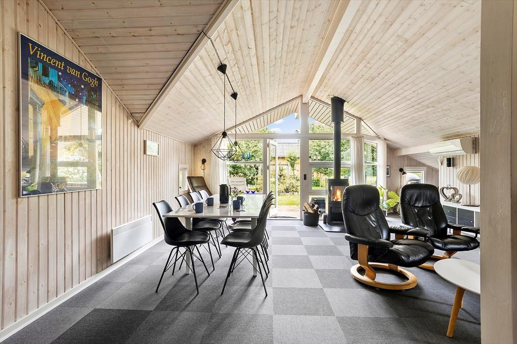 Når du træder ind i dette velholdte sommerhus, vil du straks føle dig hjemme i de lyse og indbydende rum. Huset har et stilfuldt køkken-alrum med brændeovn og varmepumpe, hvilket sikrer en behagelig temperatur året rundt. Køkkenet er moderne og veludstyret, perfekt til at tilberede lækre måltider til familien. Efter en dejlig middag kan I samles i stuen omkring brændeovnen, hvor varmen og de dansende flammer skaber en hyggelig atmosfære. Sommerhuset har to badeværelser, hvoraf det ene er udstyret med et spabad – ideelt til afslapning efter en dag fuld af oplevelser.
