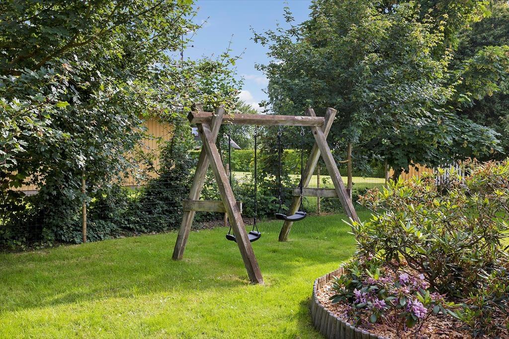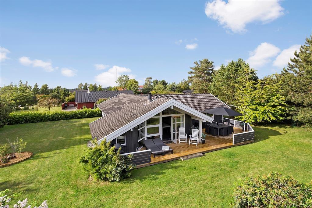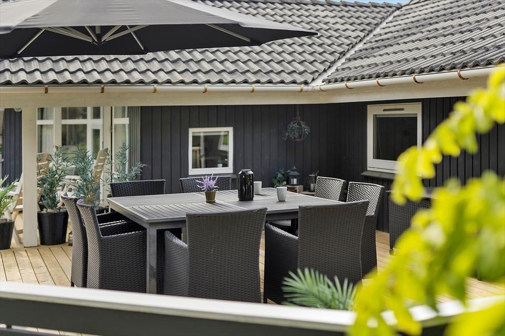 Udenfor venter en stor, hyggelig træterrasse, som er perfekt til at nyde solrige dage og lune aftener. Her kan I sidde i de komfortable havemøbler, tænde grillen og tilberede en lækker middag under åben himmel. Terrasseområdet er indrettet med tanke på afslapning og hygge, og det er nemt at forestille sig, hvordan dagen starter med morgenkaffe i solen og slutter med en god bog og et glas vin i den lune aftenluft. Den velholdte have indbyder til leg og afslapning, og der er god plads til både børn og voksne. Fuglesang og duften af blomster vil vække dine sanser, mens du slapper af i dette naturskønne område.