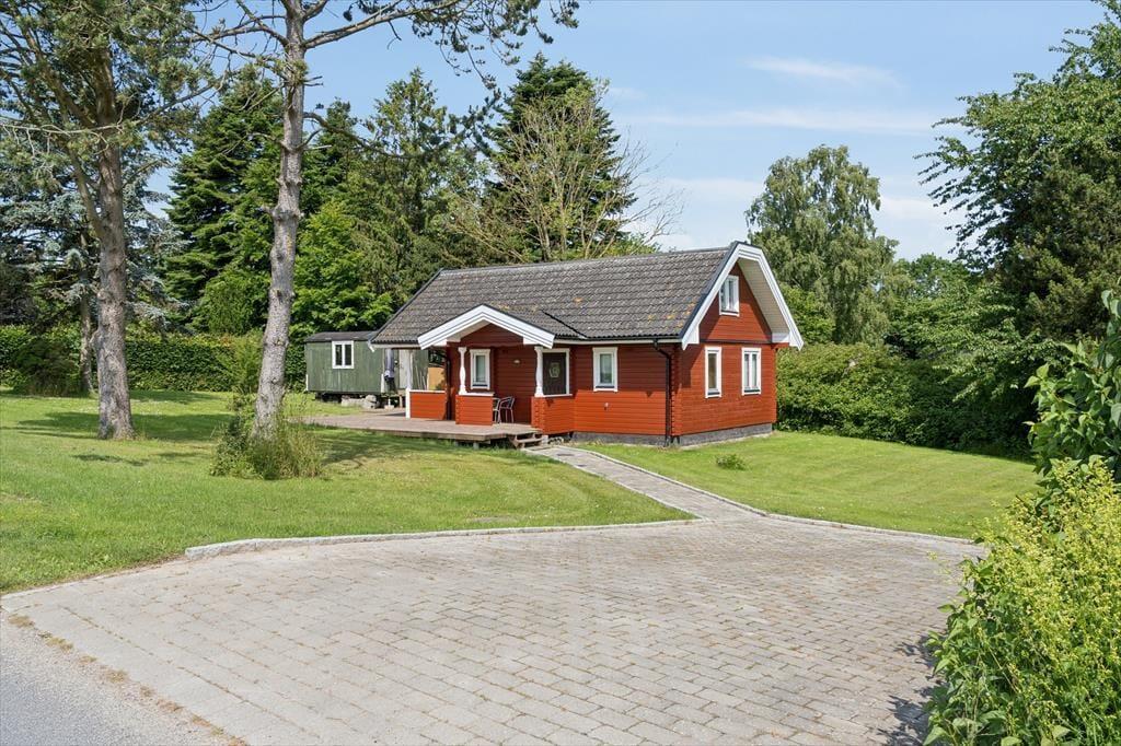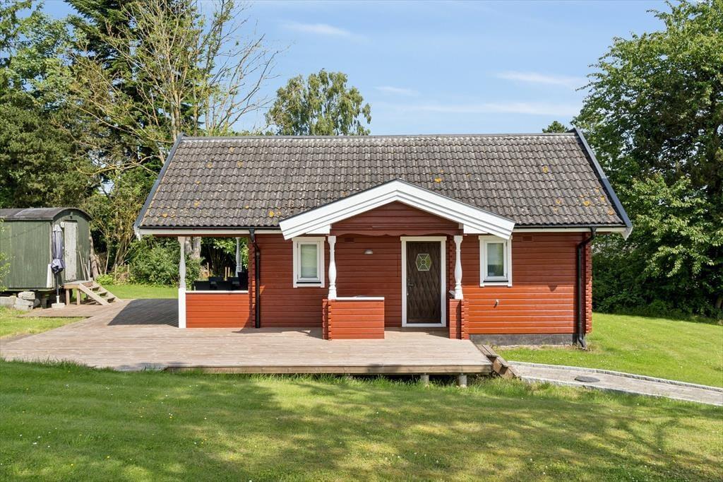 Yderst charmerende og meget velholdt helårsisoleret træsommerhus med rødmalet facade, beliggende i det skønne område ved Roneklint – lidt syd for Præstø.