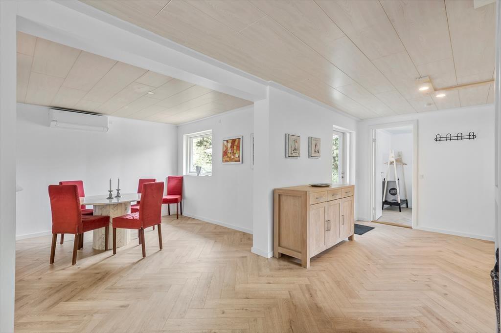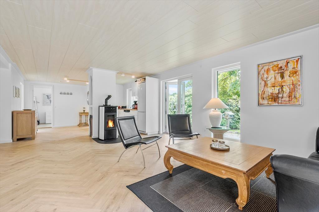 Huset er lyst og indbydende og alt er nyrenoveret, så man føler sig straks velkommen. Køkken og stue er ud i et og her kan I sammen, lave dagens måltider, imens I planlægger dagens eller næste dags oplevelser. På køligere dage kan I samles i stuen, omkring brændeovnen som er en pilleovn, læse en god bog eller se en film via Streaming TV og nyde en kop kaffe eller et glas vin. Stuen har også en varmepumpe og sovesofa. Her er desuden to dejlige soveværelser med dobbeltseng. Her kan man nemt trække sig tilbage og tage en lur. Badeværelset er indrettet med toilet, håndvask og bruseniche, samt vaskemaskine.