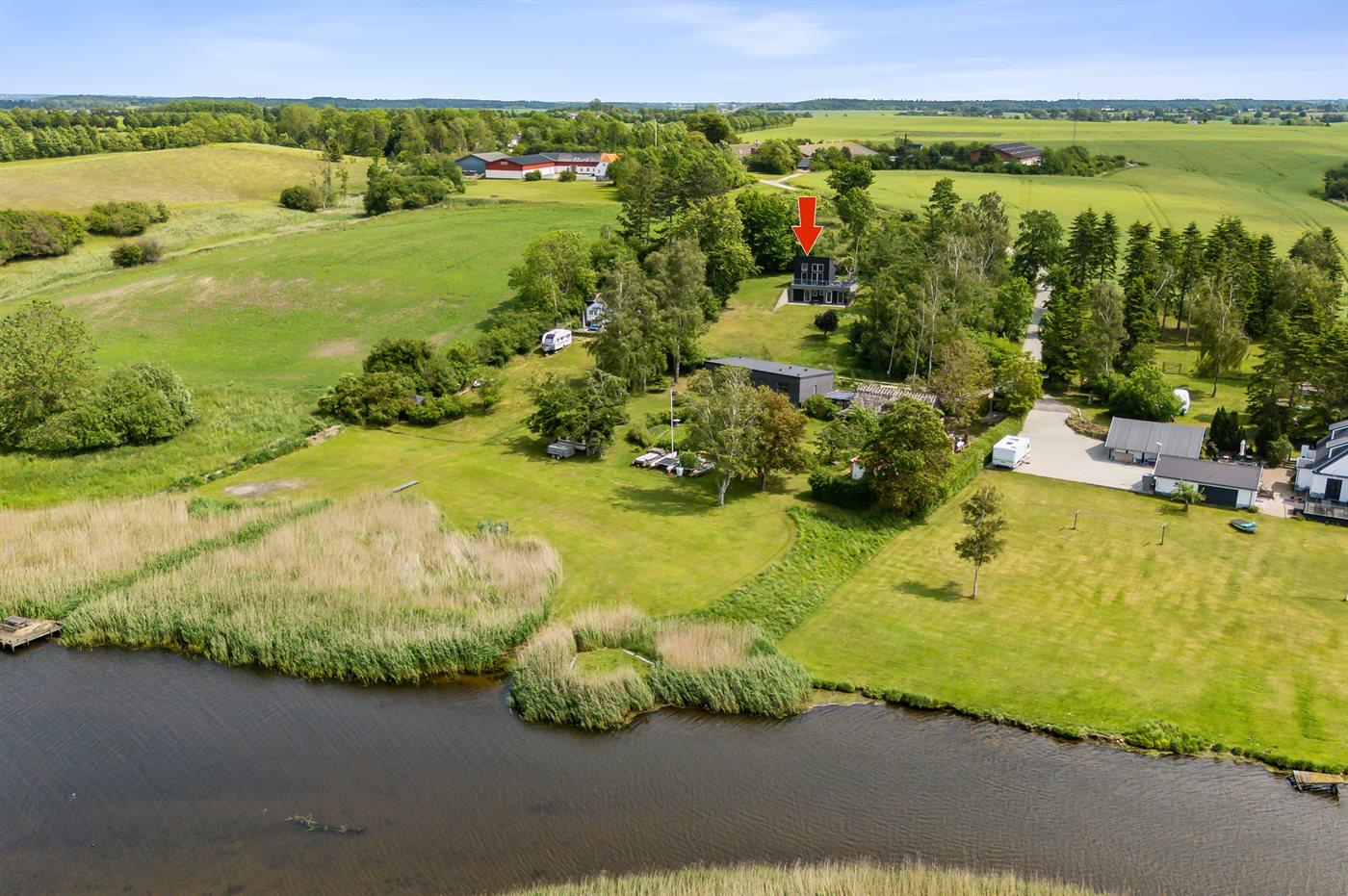 Dette utraditionelle sommerhus ligger ikke i et sommerhusområde, men i et naturskønt område med et fantastisk dyreliv for enden af en blind vej. Området er ideelt for kano- og kajaksejlads. I nærliggende skov (Boserup) findes der rig mulighed udfoldelse; vandreture, grill-områder, badning, samt flere fine Mountainbikespor. Særdeles godt havørred-fiskeri i marts/april samt oktober/november - kun 500 m fra huset. Tilkørselsvejen snor sig igennem en lille vej og forbi en bondegård.