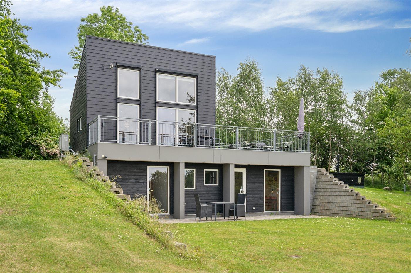 Flot, 2-etages arkitekttegnet sommerhus i træ og sten med en fantastisk fjordudsigt fra såvel hus som grund. Huset er bygget i 2008 og ligger i et naturskønt og roligt område - kun 100 m fra fjorden.