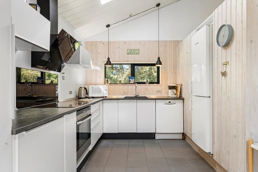 Dette hyggelige og velholdte sommerhus lægger op til ægte feriestemning med afslapning og familiehygge i højsædet. Huset råder over et åbent køkken-alrum med stue og spiseplads. Der er i 2019 sat store vinduespartier og terrassedøre ind med udgang mod haven. Huset er til seks personer og råder over tre soveværelser samt to badeværelser, hvoraf det ene er ekstra stort med spabad – perfekt til afslapning efter en dejlig solskinsdag ved stranden eller i den omkringliggende natur. I sommerhuset findes både opvaskemaskine, parabol og med det trådløse internet er det nemt at holde sig opdateret og søge informationer om områdets mange aktiviteter og seværdigheder. I dette sommerhus får I hygge, charme og ferie med nærvær og tid til familien. Huset er gennemgribende renoveret i løbet af 2018 og 2019, så huset fremstår meget velholdt.