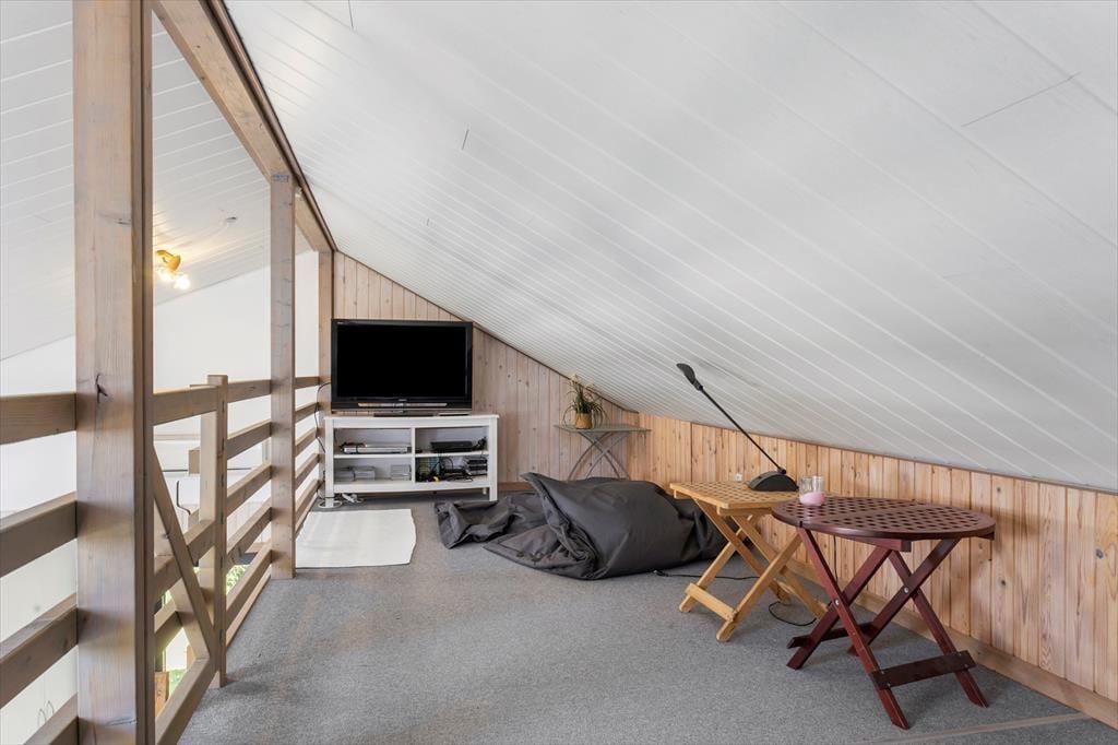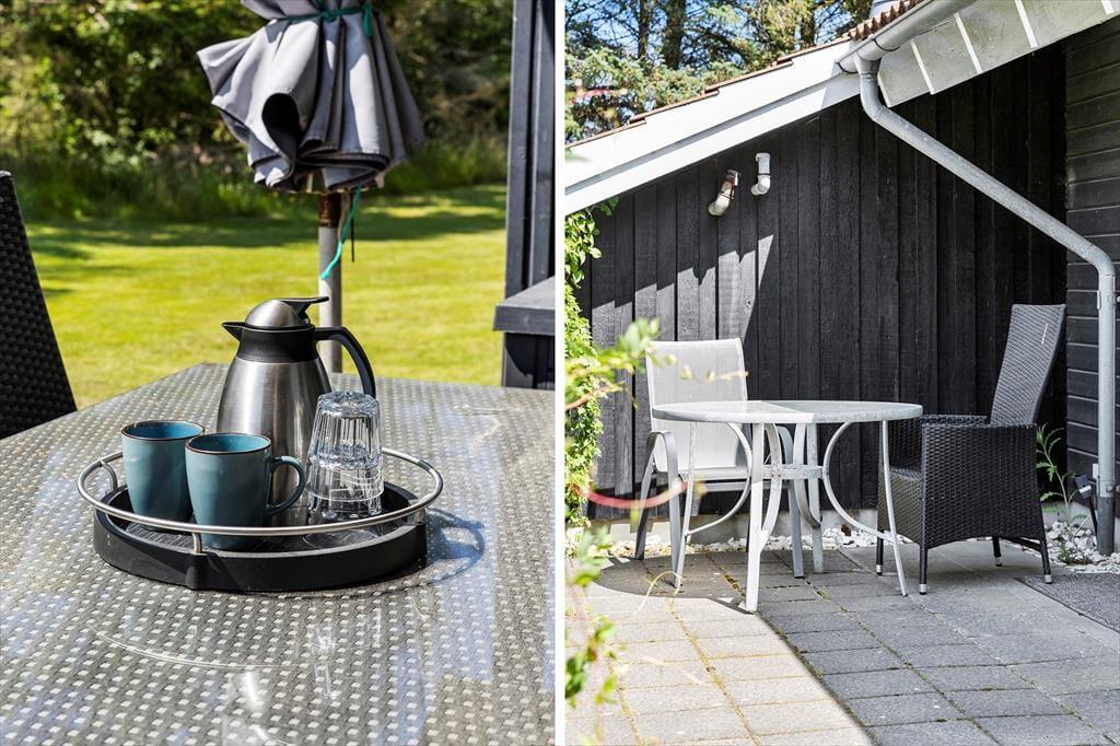 Sommerhuset er beliggende på en 5.524 m2 stor plænegrund omkranset af træer. Stenterrassen snor sig hele vejen om huset, så det er altid muligt at finde sol, skygge eller læ alt efter behov. Den overdækkede del af terrassen mod syd, indbyder til grillhygge mens familiens yngste boltrer sig på den store græsplæne. Der er naturligvis terrassemøbler, liggestole og grill til rådighed.