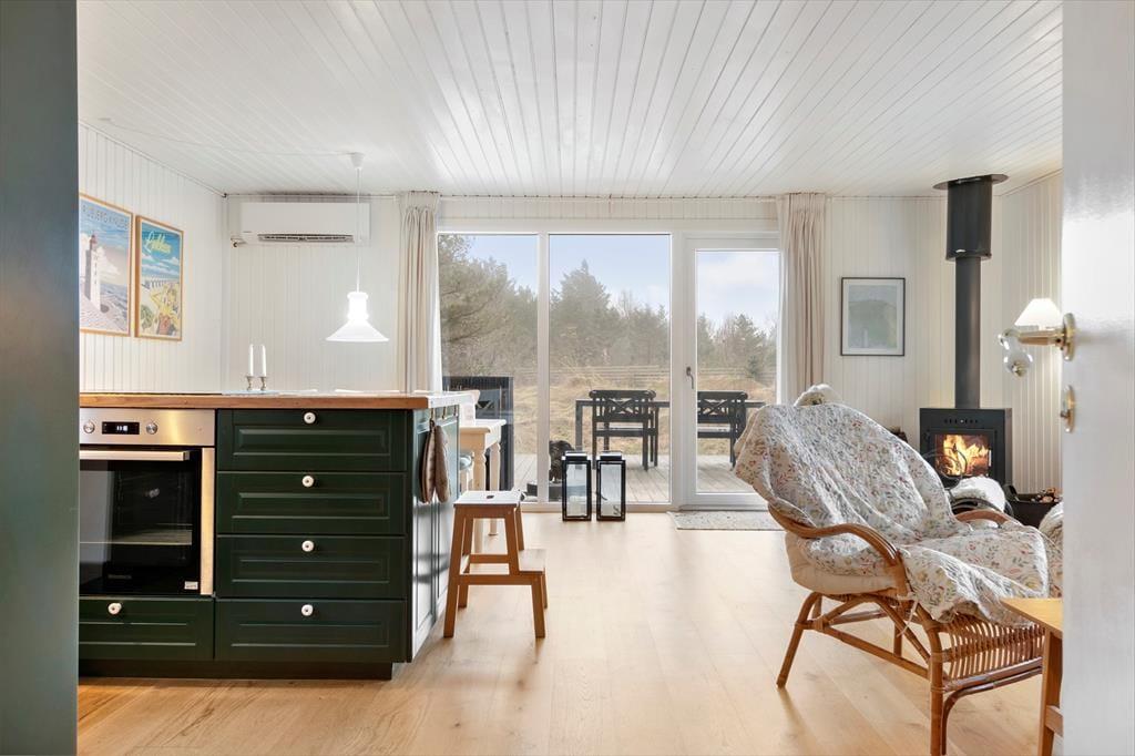 I kommer til at bo i imponerende naturomgivelser, når I holder ferie i dette dejlige og nyrenoverede sommerhus. Vesterhavet bugter sig få hundrede meter fra det fredelige sommerhusområde, og så er der få kilometer til vandreklitten Rubjerg Knude, der er en af de helt store nordjyske attraktioner.