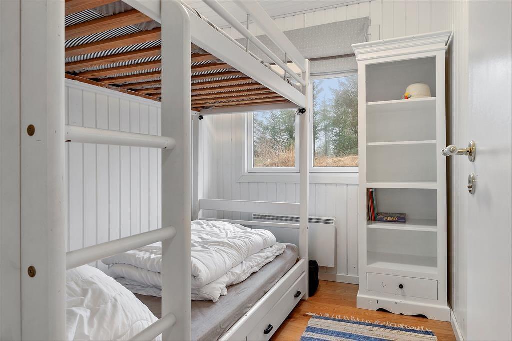 Sommerhuset finder I på den lille, lukkede Bævervej i Nr. Rubjerg. Det er et grønt og fredelig ferieområde, der ligger nær vestkysten i kort køreafstand fra både Løkken og Lønstrup. Endnu nærmere har I Rubjerg Knude, den imponerende store vandreklit, der langsomt flytter sig i vindens retning. Fra toppen af klinten kan I beundre udsigten over Jammerbugten og opleve Rubjerg Knude Fyr, der i 2019 blev flyttet 80 meter væk fra kysten, så det nu ikke er i fare for at skride i havet. De smukke naturomgivelser kan oplagt udforskes til fods ad de mange gode vandrestier, og det er naturligvis også nærliggende at afsætte tid til at dase på stranden, når vejret er til det.