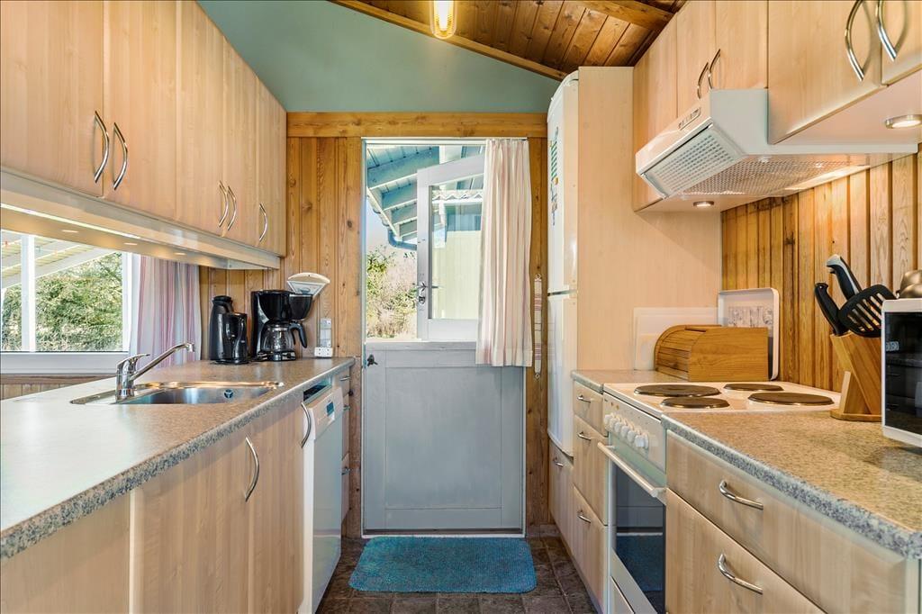 Det 68 m2 store træsommerhus er et rart sted at tilbringe dagene. Foruden et badeværelse og tre soveværelser med i alt seks sengepladser byder huset på et charmerende opholdsrum med stue og køkken i åben forbindelse. Her kan I hygge jer med at lave mad, spille brætspil ved spisebordet og slappe af med en god film i sofaafdelingen – eventuelt med ild i brændeovnen, hvis det er køligt i vejret. Er temperaturerne lunere, kan I i stedet samles i den tilstødende udestue, hvor I har udsigt til de grønne omgivelser. Og hvem ved? Måske ser I råvildt trippe forbi udenfor, mens I sidder herinde med kaffen.