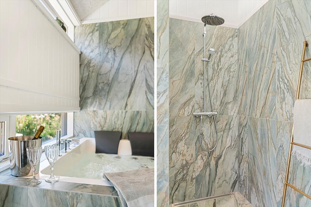 Tre hyggelige soveværelser venter på dig. Hvert værelse er indrettet med omtanke og komfort for øje. Drøm sødt i de bløde senge og vågn op til fuglekvidder udenfor. De stilfulde badeværelser har bruseniche og moderne faciliteter. I det ene badeværelse kan du også anvende spabadet til afslapning og velvære.