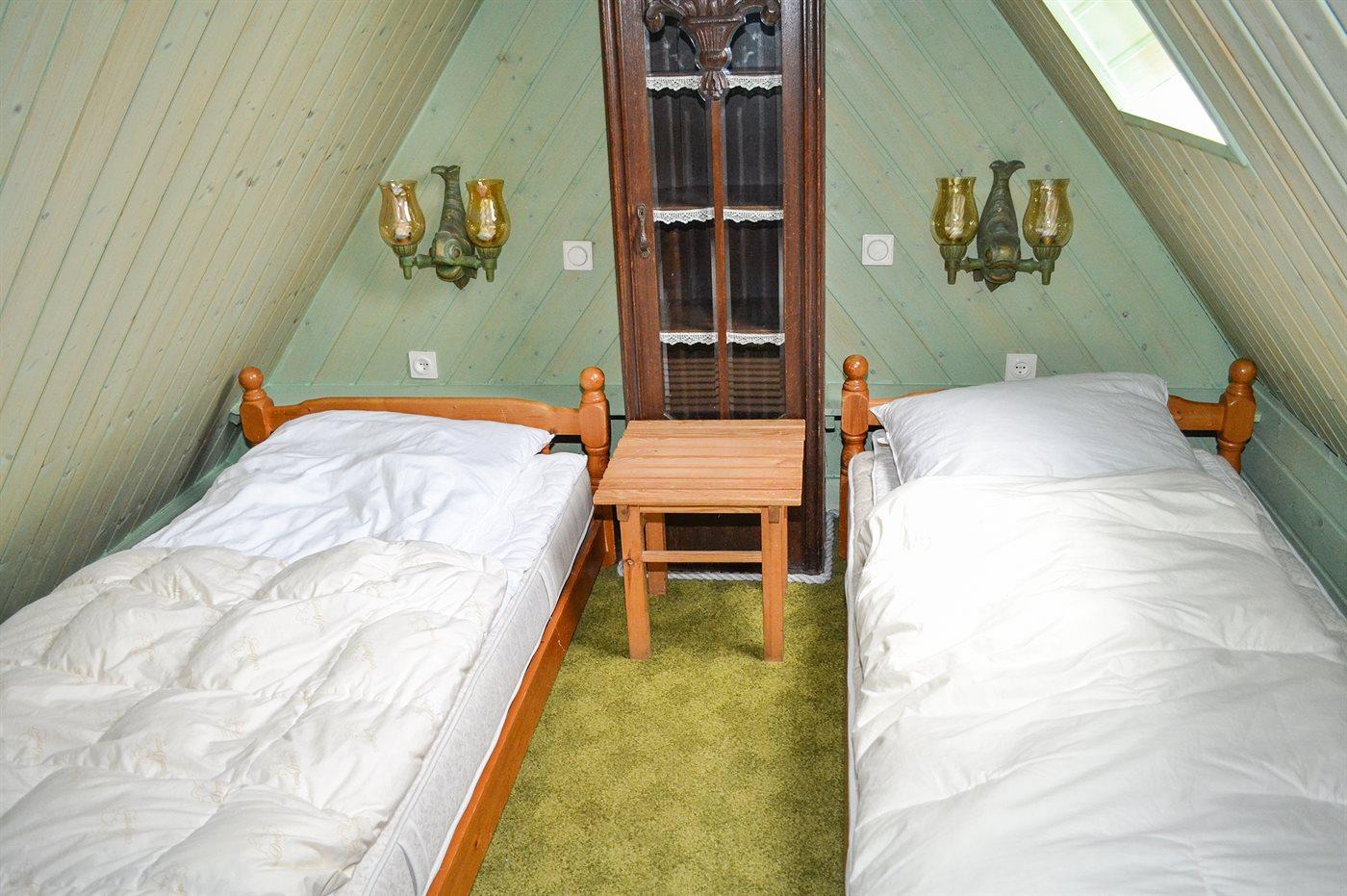 Der er i alt 2 soveværelser. Sovepladserne fordeler sig på: 4 sovepladser i dobbeltsenge. 2 sovepladser i enkeltsenge. 2 af disse sovepladser befinder sig på husets hems. Derudover er der 1 stk. barneseng.
