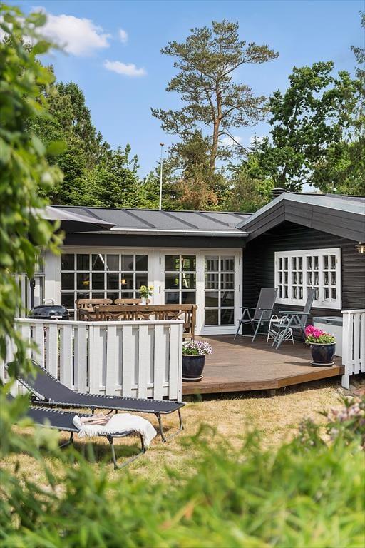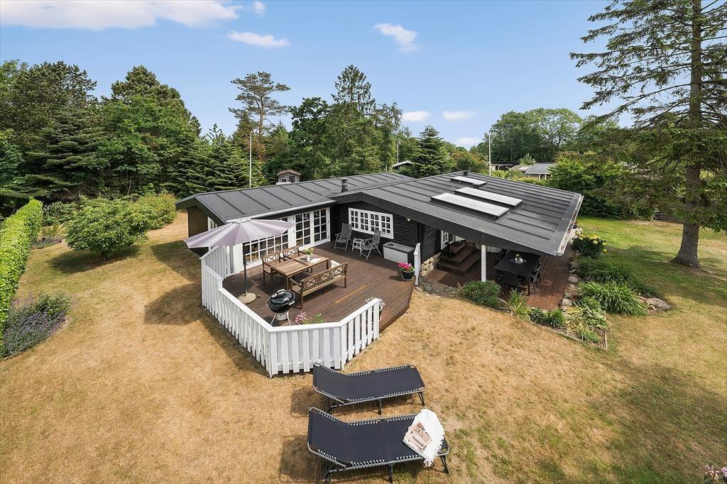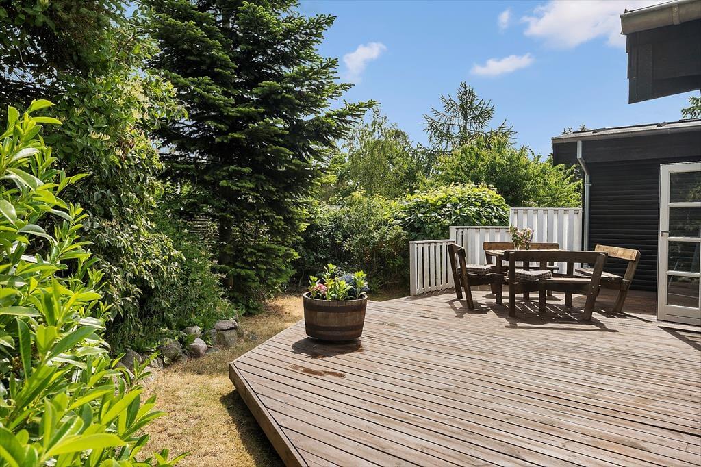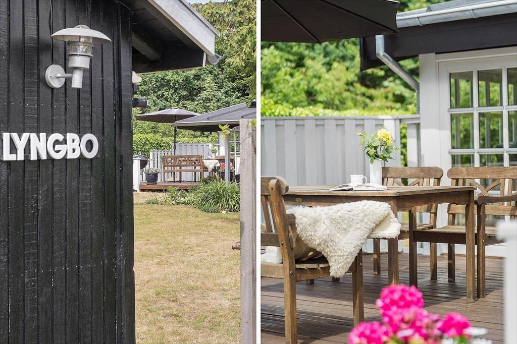 Udenfor kan I nyde den flotte, velholdte have og ikke mindst de to helt fantastiske terrasser, hvor I kan nyde både morgen og aftensolen. Derudover kan I også glæde jer over en overdækket terrasse, der forlænger sommeraftenerne til langt ud på aftenen. I den skønne have er der også masser af plads til leg og afslapning.