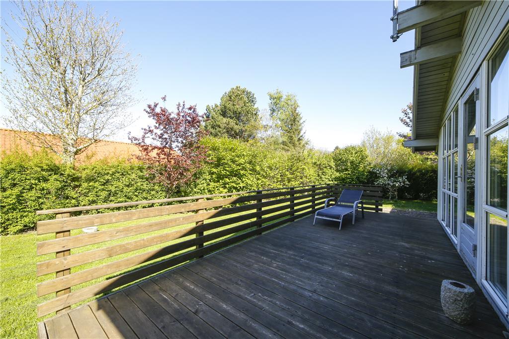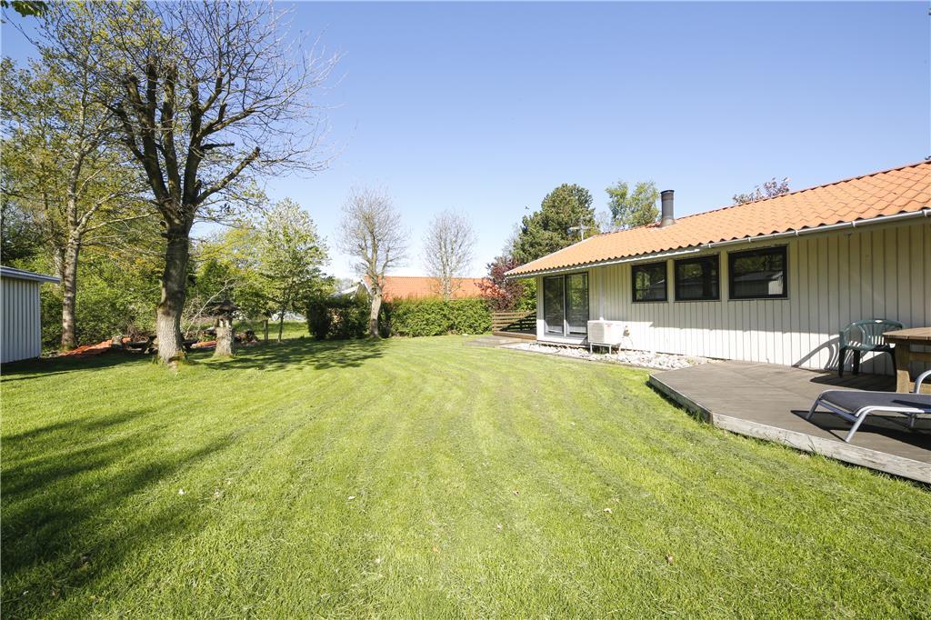 Udenfor bliver terrassen og haven det naturlige omdrejningspunkt for feriens rytme. Her begynder morgenen ofte stille med fuglesang og en varm kop kaffe, mens du ser dagen tage form omkring dig. Når solen står højest, kan du tage et håndklæde over skulderen og gå ned til stranden, hvor sandet er blødt under fødderne, og havet altid lokker med en dukkert. Du kan sidde på stranden og lade blikket glide ud over horisonten, mærke vinden i håret og bølgernes rytme, der falder i takt med din egen. Når aftenen falder på, ligger terrassen klar til en stille stund under åben himmel, hvor du kan mærke duften af sommer og høre naturen falde til ro.
