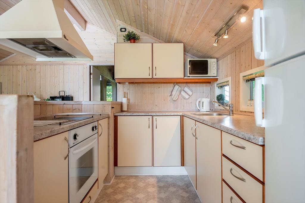 I dette skønne og lyse træsommerhus ved Rude Strand bliver du mødt af en indbydende atmosfære, hvor de store vinduespartier lukker solen og havets glimt ind i stuen. Her er højt til loftet og masser af lys, hvilket giver rummet en åben og behagelig fornemmelse. Sommerhuset er indrettet med fokus på hygge og nærvær, så det er nemt at falde til ro. Her kan du samle familien til fælles måltider ved spisebordet, finde en god film frem til en stille aften eller blot læne dig tilbage med en bog i sofaen. Det er et hus, hvor du hurtigt føler dig hjemme, og hvor rammen om ferien bliver både afslappet og uformel. Kombinationen af rummelighed, lys og udsigt gør huset til et sted, du får lyst til at vende tilbage til år efter år.