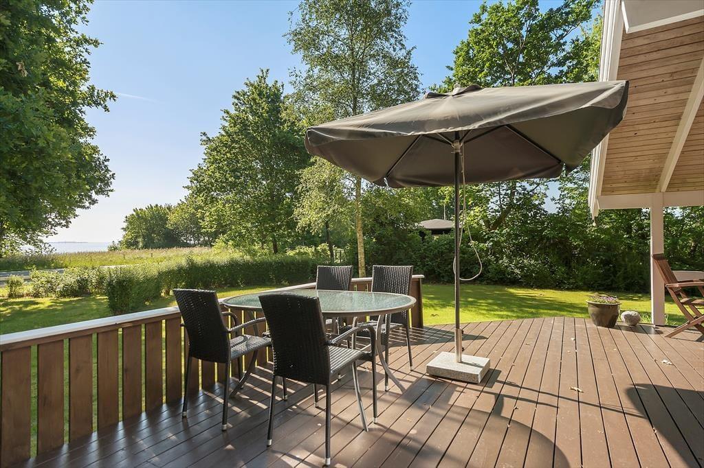 Sommerhuset byder på en stor og dejlig terrasse, der indbyder til udeliv fra morgen til aften. Start dagen med en kop kaffe i morgensolen, tænd grillen til frokost eller saml hele familien til middag under åben himmel. Når aftenen falder på, kan du blive siddende ude og nyde stilheden, mens solen går ned. Den store afskærmede have giver privatliv og trygge rammer, hvilket gør sommerhuset særligt børnevenligt. Her kan børnene lege frit på græsset eller svinge sig i gyngen, mens de voksne slapper af på terrassen. Fra haven og terrassen kan du lade blikket glide ud mod havet, hvor udsigten fuldender oplevelsen af ferie ved kysten. Her får du et sted, hvor naturen altid er tæt på, og hvor du kan nyde udelivet i dit eget tempo.