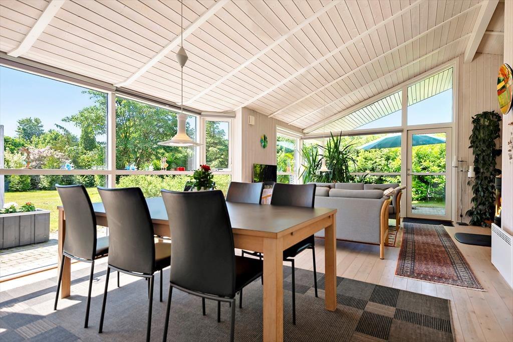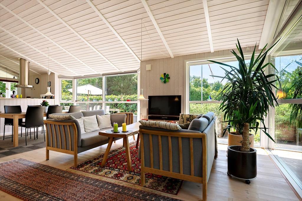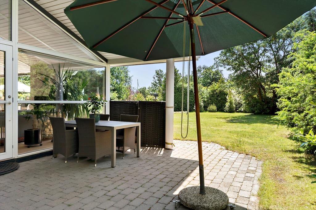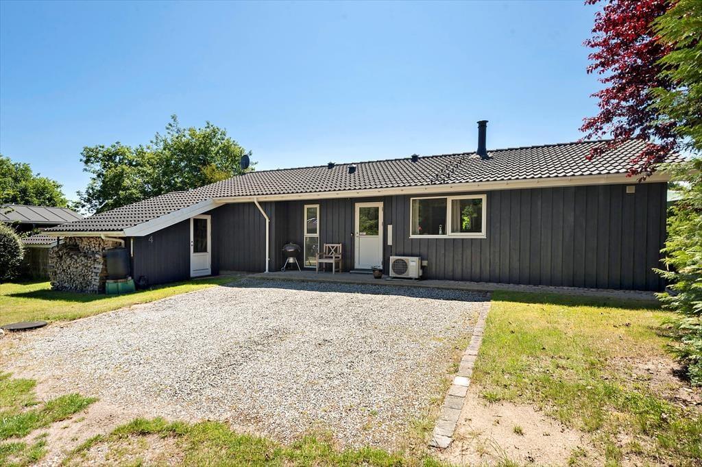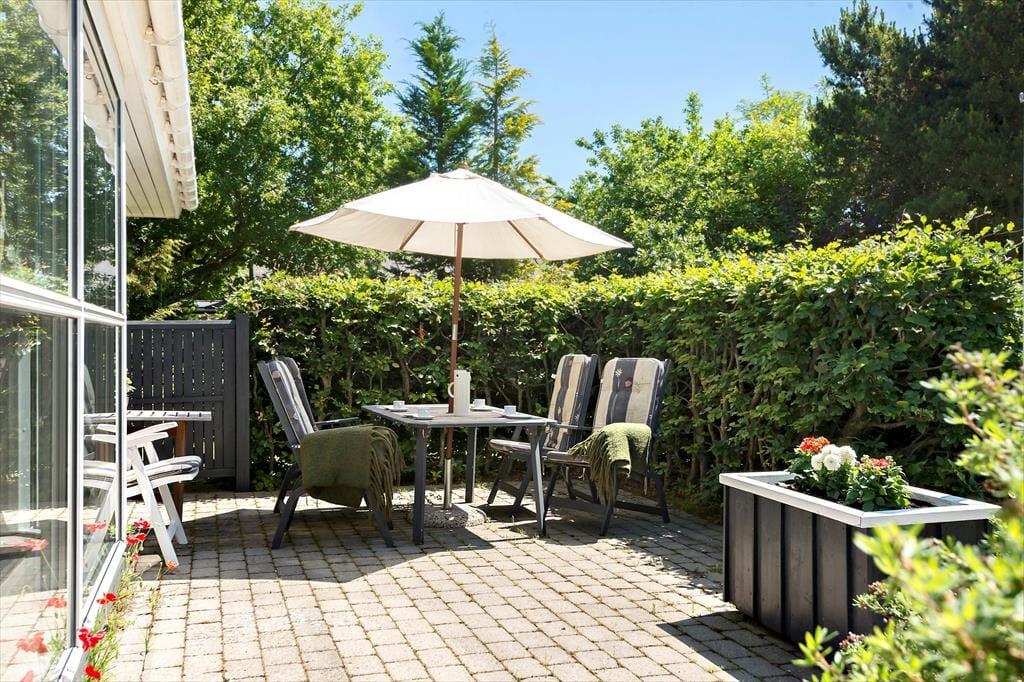Sommerhusets have er som skabt til det stille udeliv – et fredeligt sted, hvor du kan finde ro mellem træerne og lade tankerne drive afsted. Her er plads til at brede sig ud med tæpper på græsset, tage skoene af og mærke underlaget, som stadig er lunt fra solen. På terrassen kan du tilberede aftensmaden i det fri, mens vinden rasler sagte i løvet, og duften af grill breder sig i haven. Måltiderne spises i det fri, ofte med lidt sand mellem tæerne og salt i håret, og bagefter trækker dagen ud med kortspil, lidt vin i glasset og fuglesang som baggrund. Når du har lyst til en dukkert, er stranden aldrig langt væk. Du følger blot den lille vej gennem området, og snart står du med fødderne i sandet og havet foran dig – klart, forfriskende og åbent.
