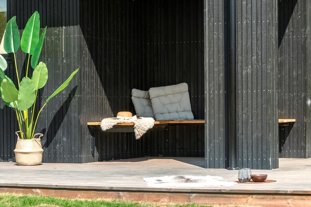 Udenfor venter ferieglæden i fuldt flor. Du har adgang til flere terrasser, så du kan følge solen hele dagen – fra morgenkaffen til grillmiddagen og et glas rosé i det gyldne aftenslys. Og når mørket falder på, kan du synke ned i det udendørs spabad og lade dagens indtryk falde til ro under stjernehimlen.